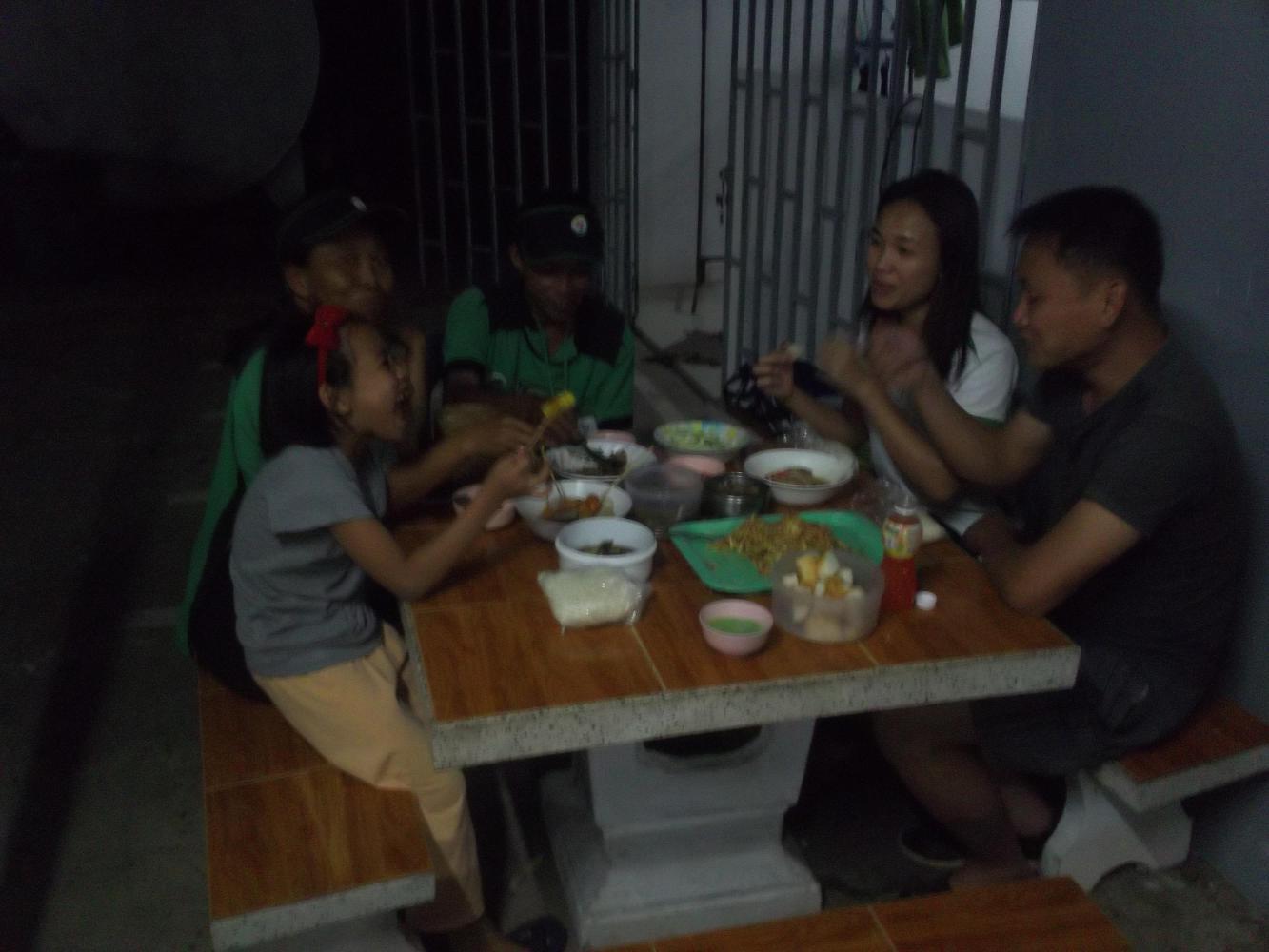 My talk with Dea was interrupted by an invitation to eat dinner with the gas station staff. From what I could make out the business was owned by a youngish couple, whose daughter also joined us, along with the two people that were pulling the pumps. We sat outside under the dim lights of a building, on the walls of which geckos darted about eating flies. Our table was filled with an array of delicious looking and smelling foods and I was invited to tuck in. Then I explained that I was a vegetarian and suddenly almost all of the food became off-limits to me. Instead a plate of chopped up bread was handed to me, along with a small bowl of mysterious green gloopy goo. It's not always easy being a vegetarian.