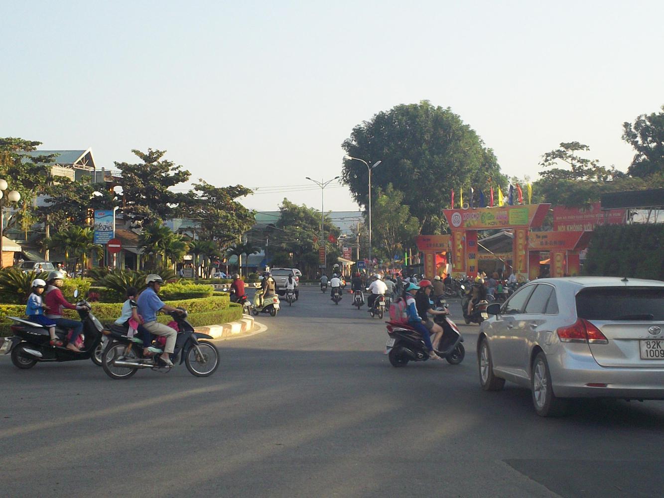Kon Tum was madness. If I thought I'd seen a lot of motorcycles before, Kon Tum was a reminder that things can always get more crazy. Absolute chaos it was. On a bicycle the instinct in this situation is just to keep as far right as possible and out of the way, but when the right side of the road is used as a 'going-the-wrong-way' lane, and bikes are apt to appear from any side road or entrance and ride straight into the traffic without looking, even that simple strategy becomes dangerous. I just did what I could to look everywhere at once, covered my brakes, remained constantly ready to swerve, and hoped for the best.
