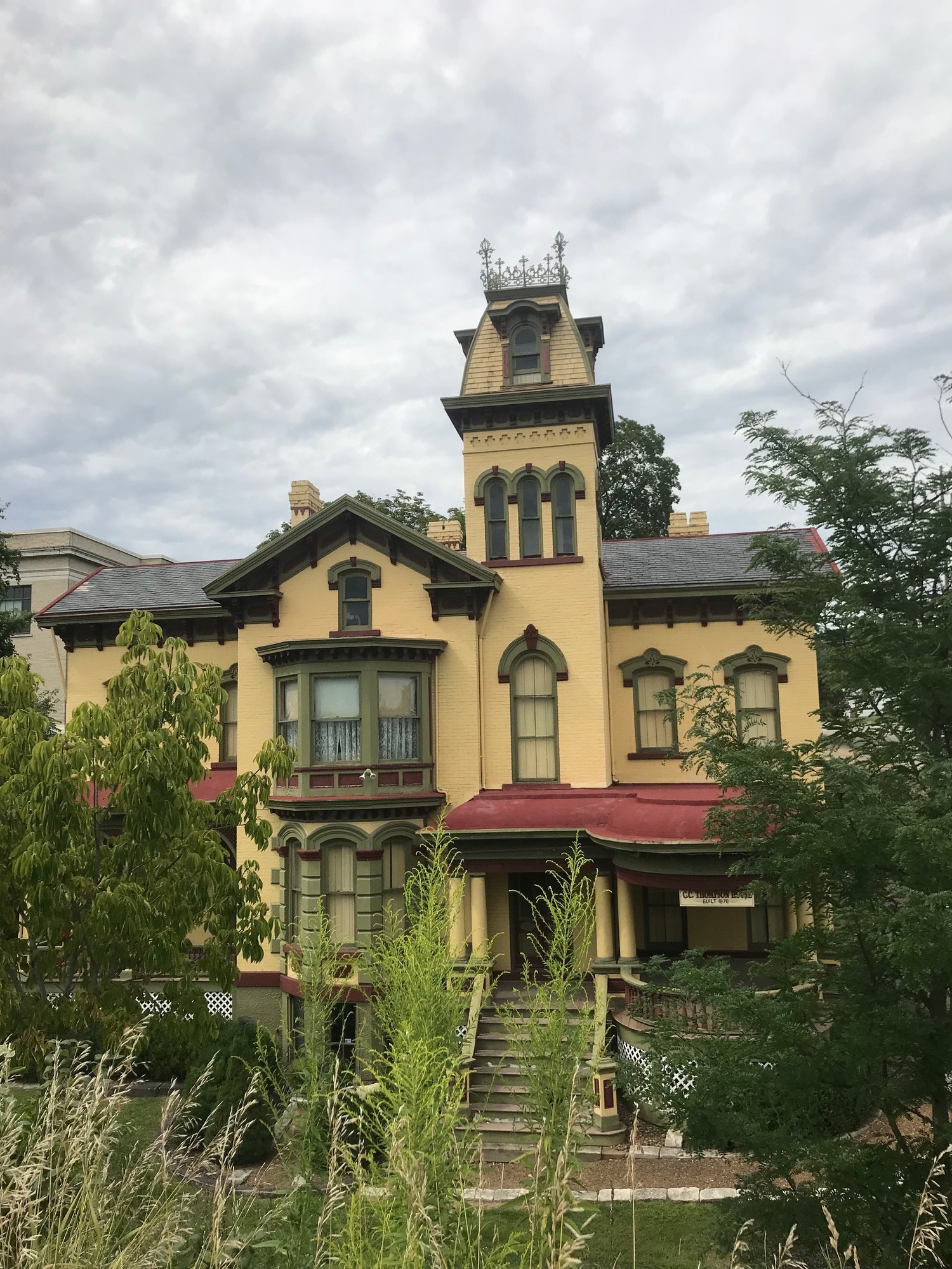 Cassius Clark Thompson was a businessman in the pottery industry that flourished in the area during the late 19th Century. He built the house for his family on a hill that overlooked the Ohio River at the time. Today, his pottery business is gone and his view would be blocked by the highway. Fortunately, his house still stands roughly 150 years later.
