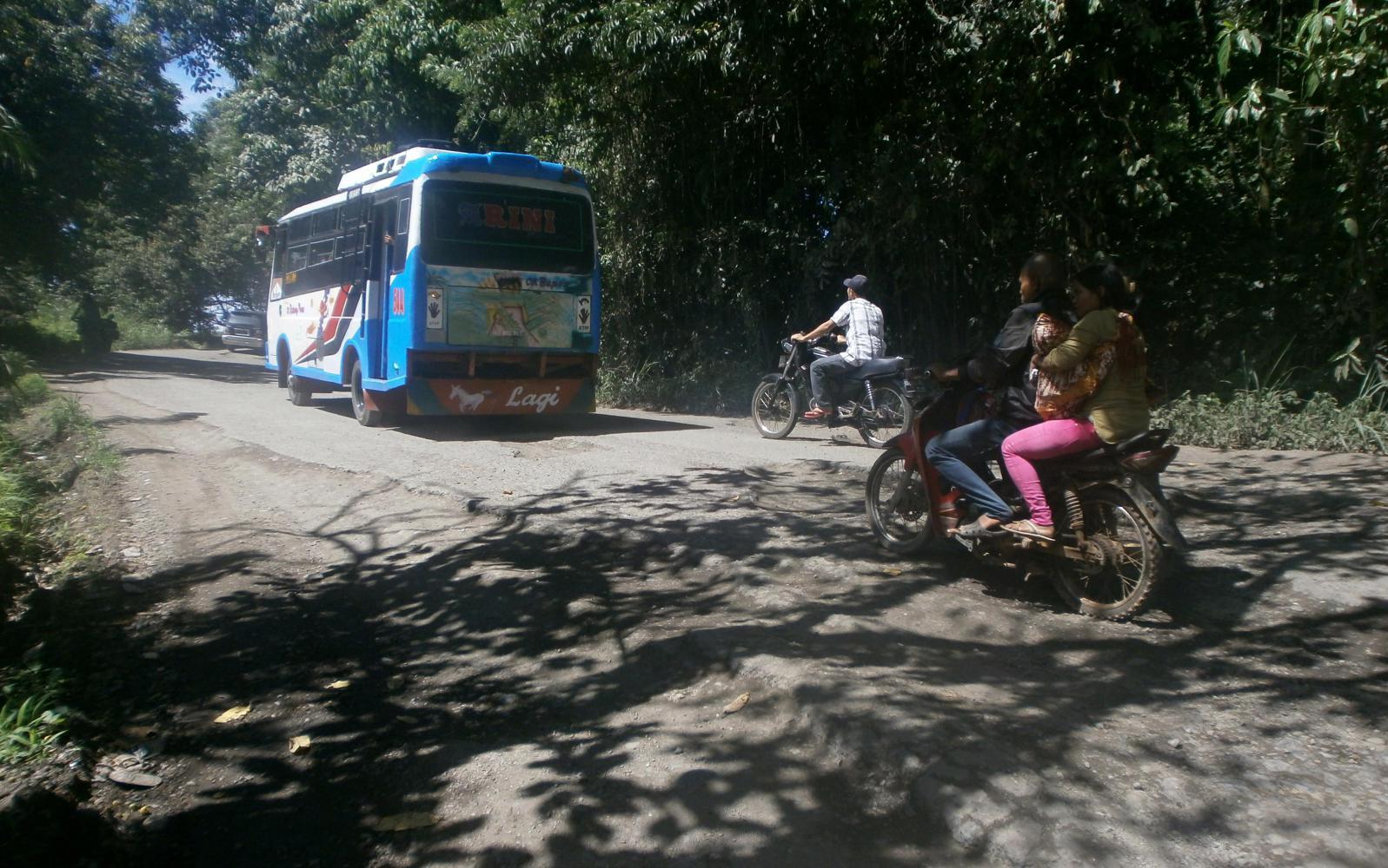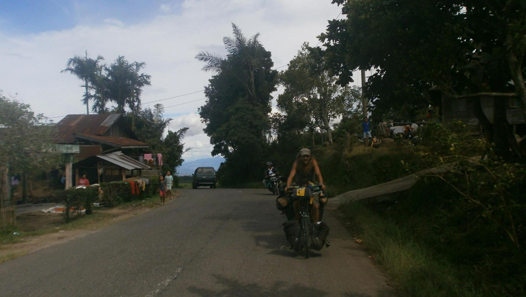 As expected I had visitors in the morning, even though I’d made the effort to get up at first light in order to take my tent down. As I was in the midst of that familiar process, still sleepy and irritable as a result of the previous night, an old woman who probably owned the nearby stall came and stood and stared at me. I smiled at her. She seemed cautious of me and so I did my best to connect with her in Indonesian by saying “Hello Mister.” She smiled back at least. Then a guy on a motorcycle stopped and stared gormlessly too. The start of another day in Sumatra.
