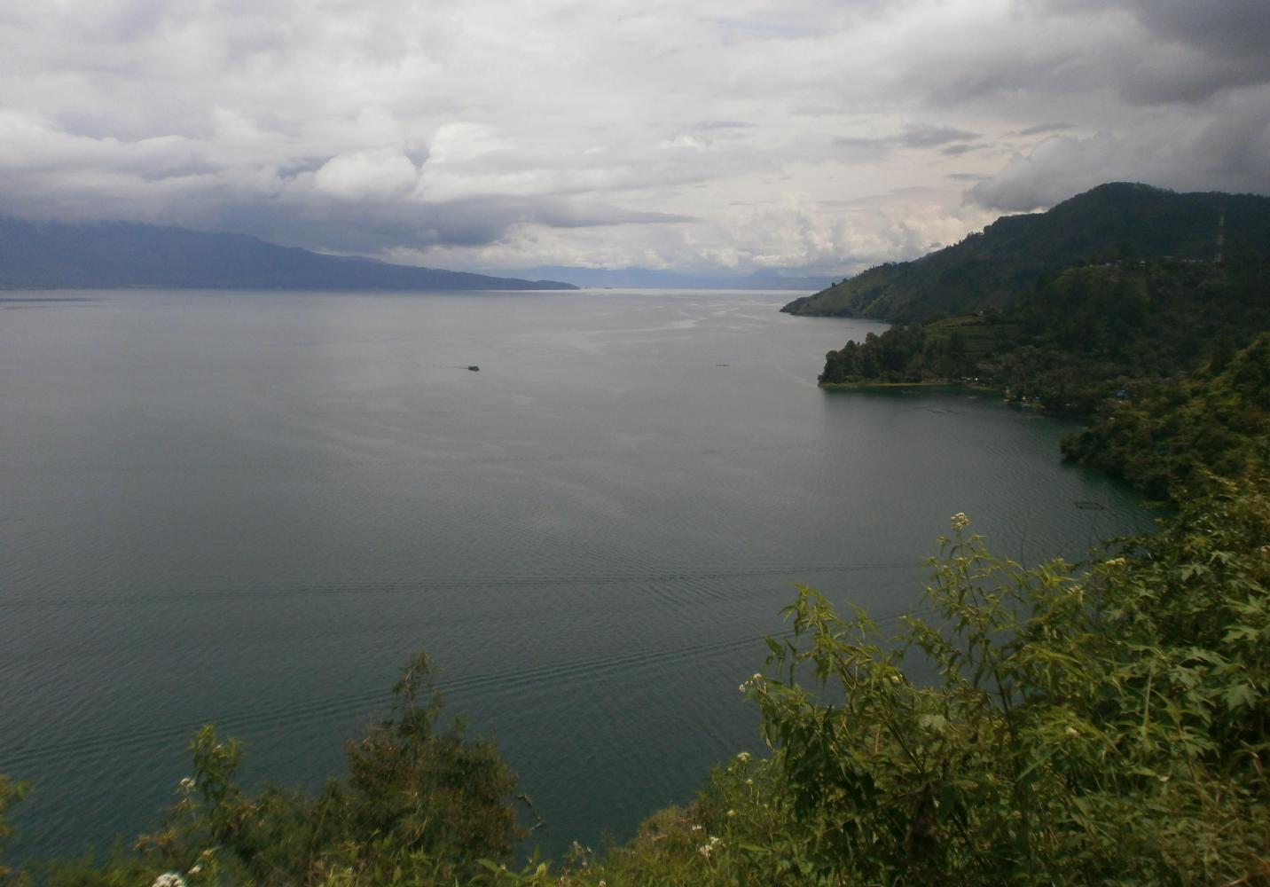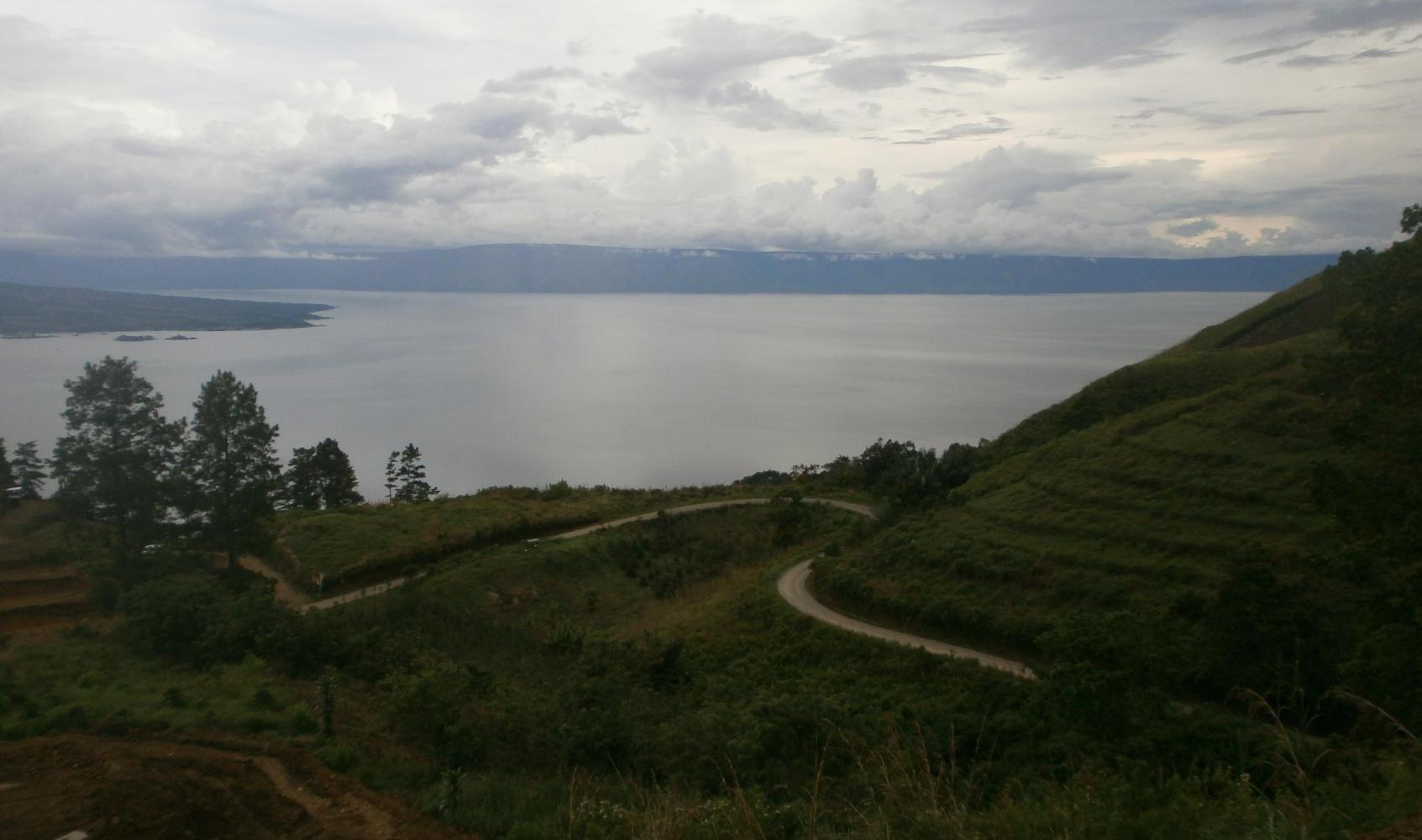 The road was very busy and dangerous for a few kilometres as we climbed up and up through rainforest and past monkeys, until we reached a turn-off that would take us away from all the vehicles. That was a much, much better road, climbing up and down along the lake with some great views down over the water. The scale of things was such that even after forty kilometres I looked down at the lake and could still see Tuk-Tuk, but eventually we put enough distance behind us and left the lake for good. Then we were back on the flat, which meant easier cycling, but more people and fewer camping options. Once again we found ourselves setting up our tents in a field in the dark, hoping that none of the farm workers that saw us on their way home would mistake us for terrorists.