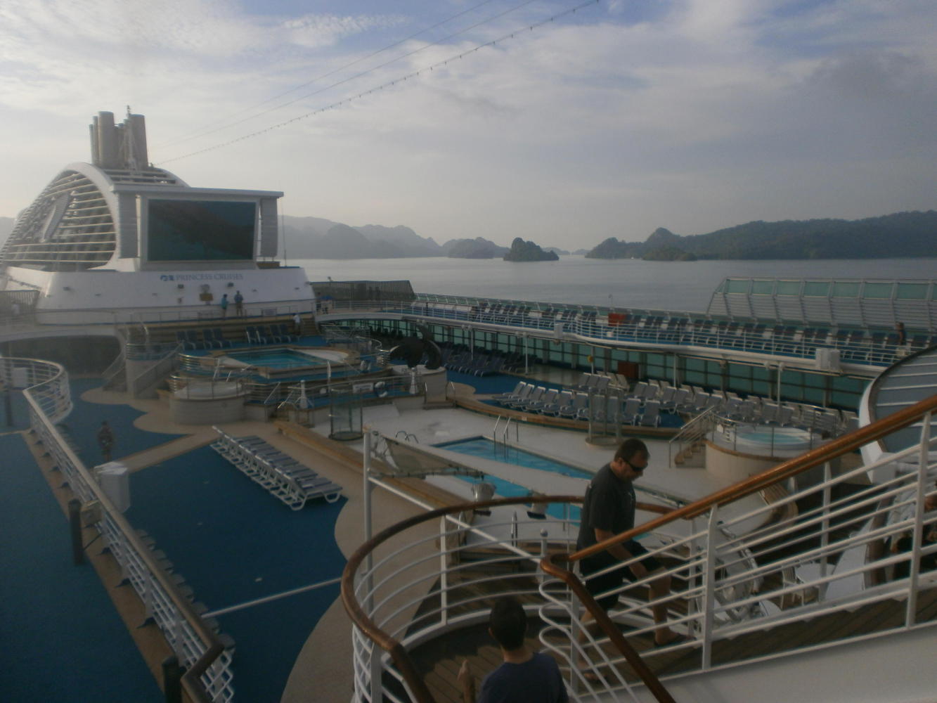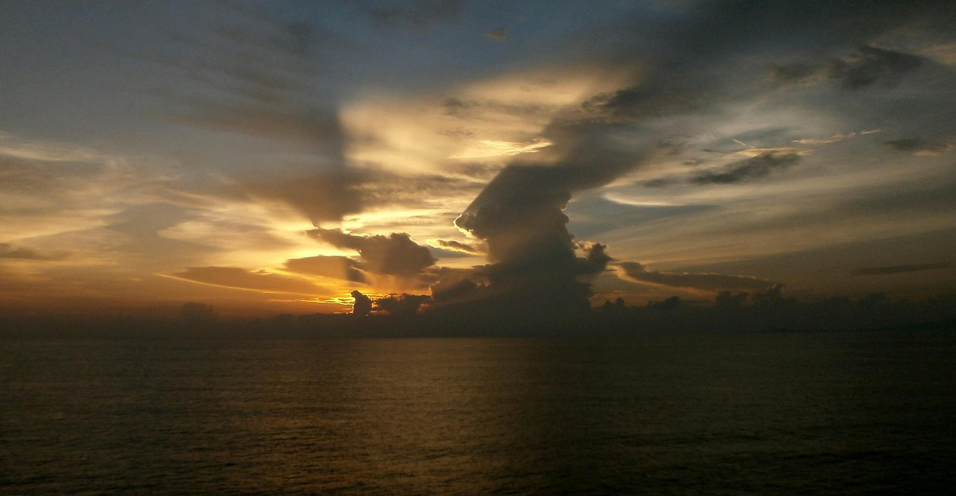 Tom came and found me, bottle in hand, and we walked back to the boat together. I wasn’t sure how much Tom was enjoying being on a cruise ship, it wasn’t really his scene. I thought about this more as the ship departed in the evening. There was a special sunset as we sailed away through the small islands and I had on my Mp3 player. As The Verve’s ‘Lucky Man’ played in my ears I looked at the striking scene around me and reflected on how very lucky I was, and how privileged to be able to travel in this luxurious way. How fortunate to be able to step away from the poverty and struggle I’d witnessed too much of, and to experience a different world aboard this boat. And I thought of Tom, poor confused Tom, and how I could tell for sure that he had been much happier on the floor of that cockroach-infested Indonesian ferry.