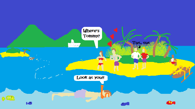 Back on the beach I sat with Briony and we tried to look for Tom, but we couldn’t see him. “He swam over there,” Briony’s mum informed us, pointing half a mile away to a neighbouring island. He really did do some strange things, did dear Tom.