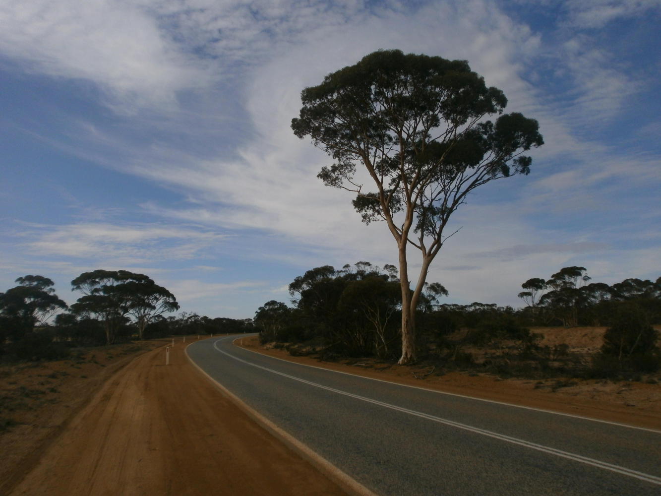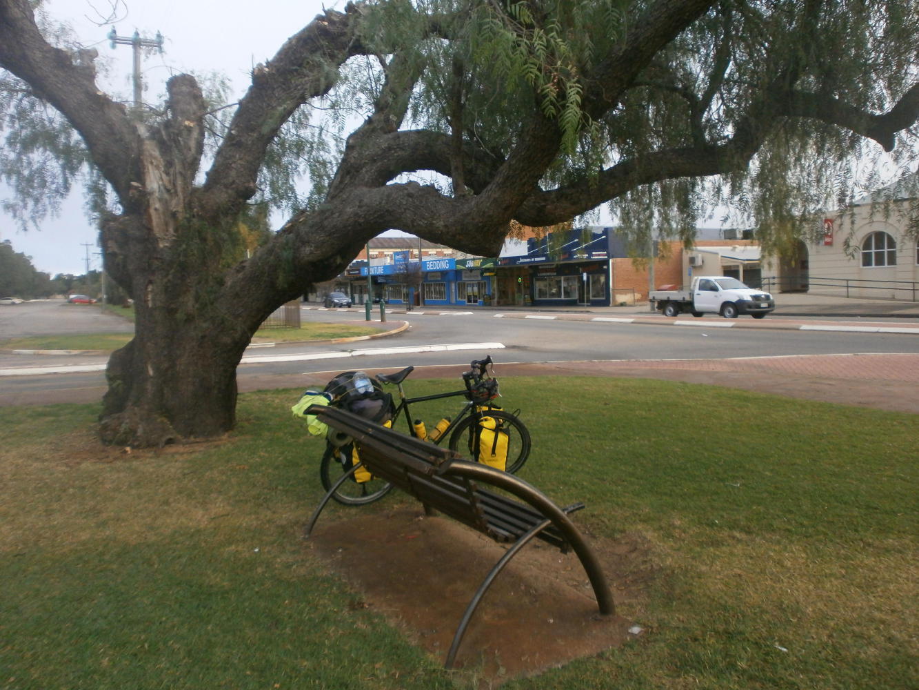 After twenty kilometres I was in the town of Merredin and even though it was cold I stopped and fixed a couple of slight problems with my bike whilst I waited for the tourist information to open. Once it did I was able to get a free map of the Nullarbor, although this was rather a superfluous item, given that the Nullarbor consists of one very long road with no towns on it. I was also able to ask if they knew where I could use wifi and was told that if I sat opposite the local Target store I’d be able to use theirs. This I did, and I immediately looked up the wind forecast for the coming days. Headwind. Headwind. Headwind. Headwind.