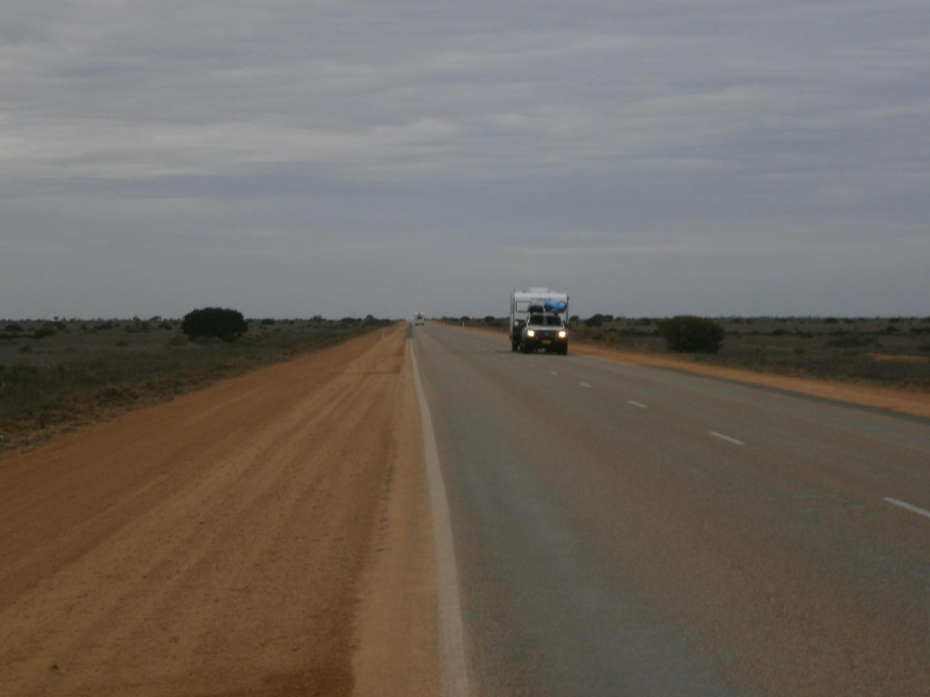Caiguna roadhouse was unexciting, although a first corner for 146 kilometres and a first time zone crossing raised hopes that I was beginning to make some progress across this vast land. I camped early, with good intentions to get up in the middle of the night, despite my fatigue, in order to make up the lost distance. The Nullarbor was proving a challenge, although I have to say not in the way you might expect. I’ve often seen the Nullarbor described as ‘adventure touring’ and, just to set the record straight, it really isn’t. In fact, in my opinion, it’s the opposite. Water, and even food if you can afford it, is easy to come by every day, or at least every other day, at the roadhouses. The road surface is perfect, it is generally flat, and there are very few difficulties to be overcome. And if you do get into trouble some Grey Nomads will surely come to your rescue within minutes. The only real challenge is surviving the boredom, but I’d say that just about every single road in Asia deserves the term ‘adventure touring’ more than the Nullarbor. Don’t get me wrong, I wasn’t complaining - I was really appreciating that, headwinds and my own pressing deadlines put to one side, it was generally easy cycling, but it was not adventure touring. I was spending all day waving at old people.