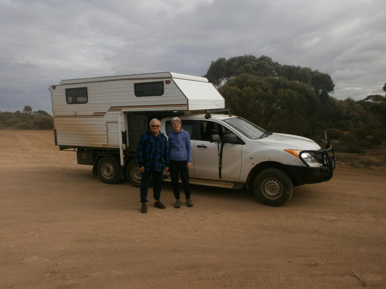 The only moment of any interest came five kilometres before the roadhouse at Caiguna, when I pulled into a rest area to look at a blowhole. The blowhole was slightly interesting, but the experience was made much better by the nice Grey Nomad couple who were also there. John and Pru, from Tasmania, were lovely, and offered me fruit and a drink. Also touring cyclists, they were soon about to embark on a trip in Europe, through Reims and Luxembourg, then along the Mosel and Rhine rivers in Germany. It was almost the same route that I had taken on the first few days of my journey – how very long ago that seemed now. My spirits were lifted by our encounter, although as I tried to talk with John and Pru I realised how exhausted I really was, almost completely sapped of energy, drained by the ceaseless wind.