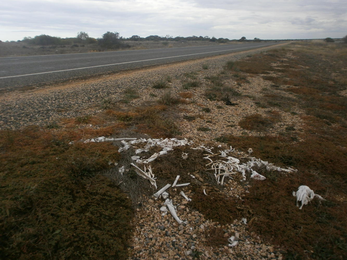 What was sadder was the extraordinary number of dead kangaroos that littered the sides of the highway. There were so very, very many; carcasses in various states of decomposition, and all along the road. Every few metres in some places, and it was rare to go more than a hundred metres between them. Some were fresh meat for the scavenging birds that circled overhead, but many were skeletons already picked clean.