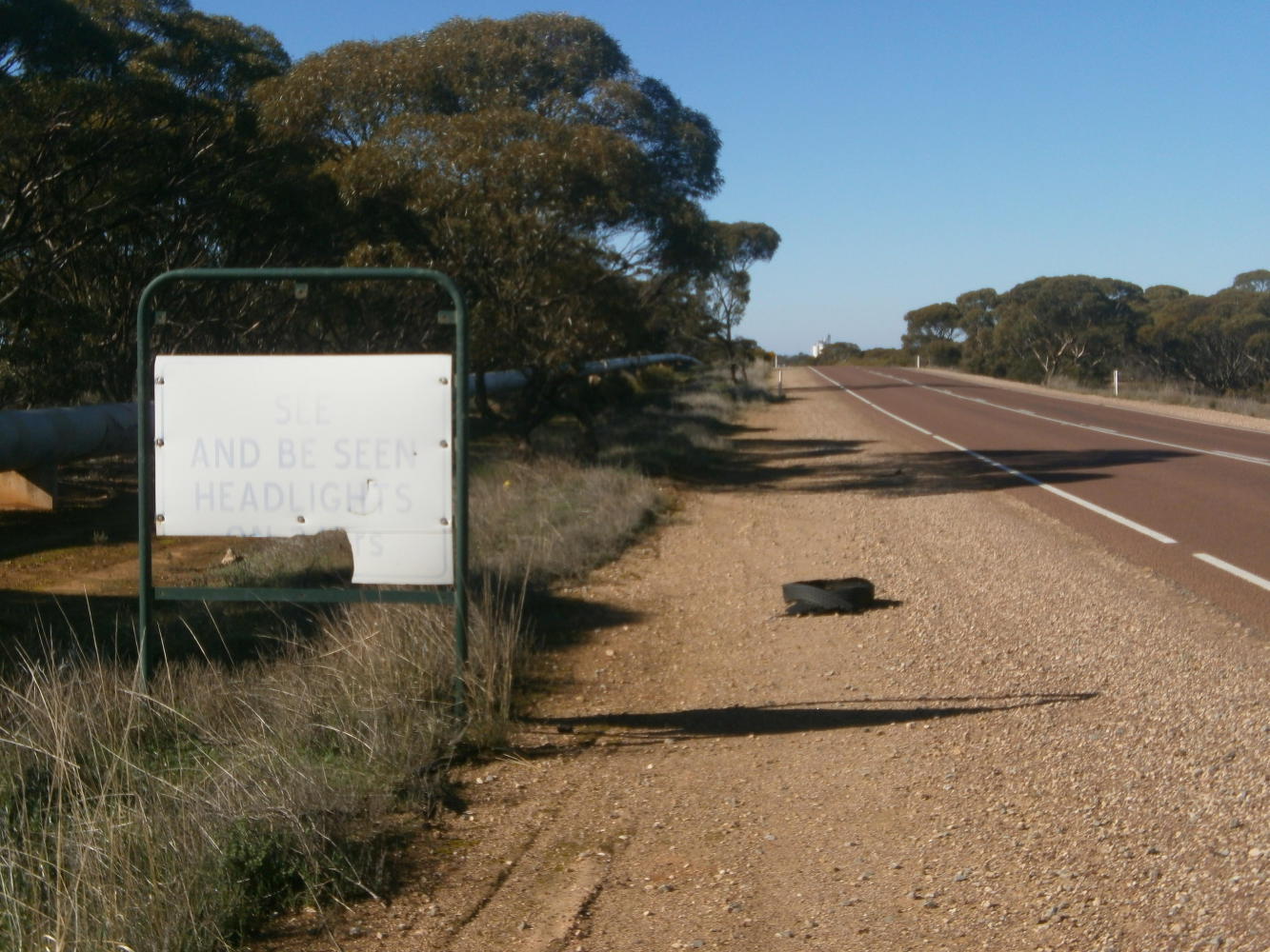 That night a mouse was trying to gain access to my tent. It kept scratching against the sides and waking me up, and I knew it wouldn’t leave me alone once it had got a smell of my cookies, despite all my best animal impressions. I tried pretending to be a cat, but after a brief retreat it soon returned, so then I tried barking at it like a dog, but this had no effect. My cow impression just seemed to encourage it, and there was nothing else for it, but to get up before it could gnaw a hole, and just start cycling at two in the morning. At least there were no kangaroos around now that I was back in wheat country, and traffic was non-existent.