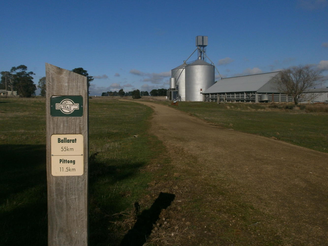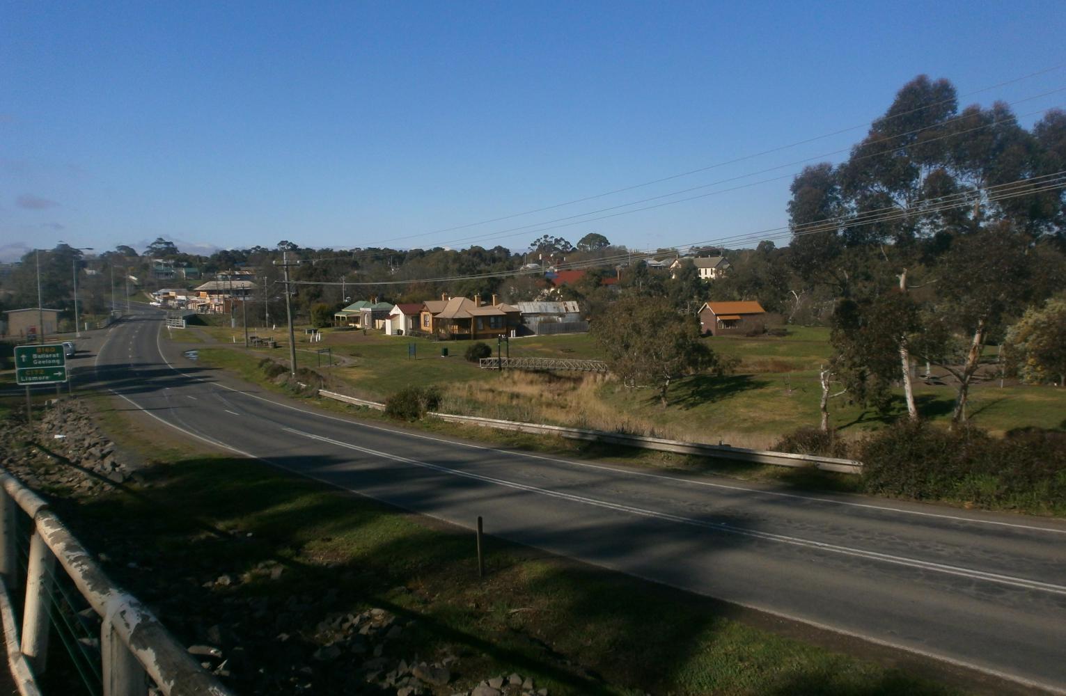 From Dunkeld the main road became busier, so I found smaller back roads which were an absolute delight to cycle. The next morning I reached Skipton, and was intrigued by a sign pointing to a ‘platypus viewing platform’ in the centre of town. I followed the signs through a park and down to a little creek, where there was indeed a platform, and an information board that proudly announced that platypuses could be viewed right here. Unfortunately there weren’t presently any platypuses on view. I knew that seeing one would probably require a bit of time and patience, and seeing as I had neither commodity to spare I didn’t stay longer than it took to eat my peanut butter and jam sandwiches, which sadly wasn’t enough time for any platypuses to show themselves. Although I was on schedule, I was certainly still going to be cutting it a bit fine and I quickly hit the road again.