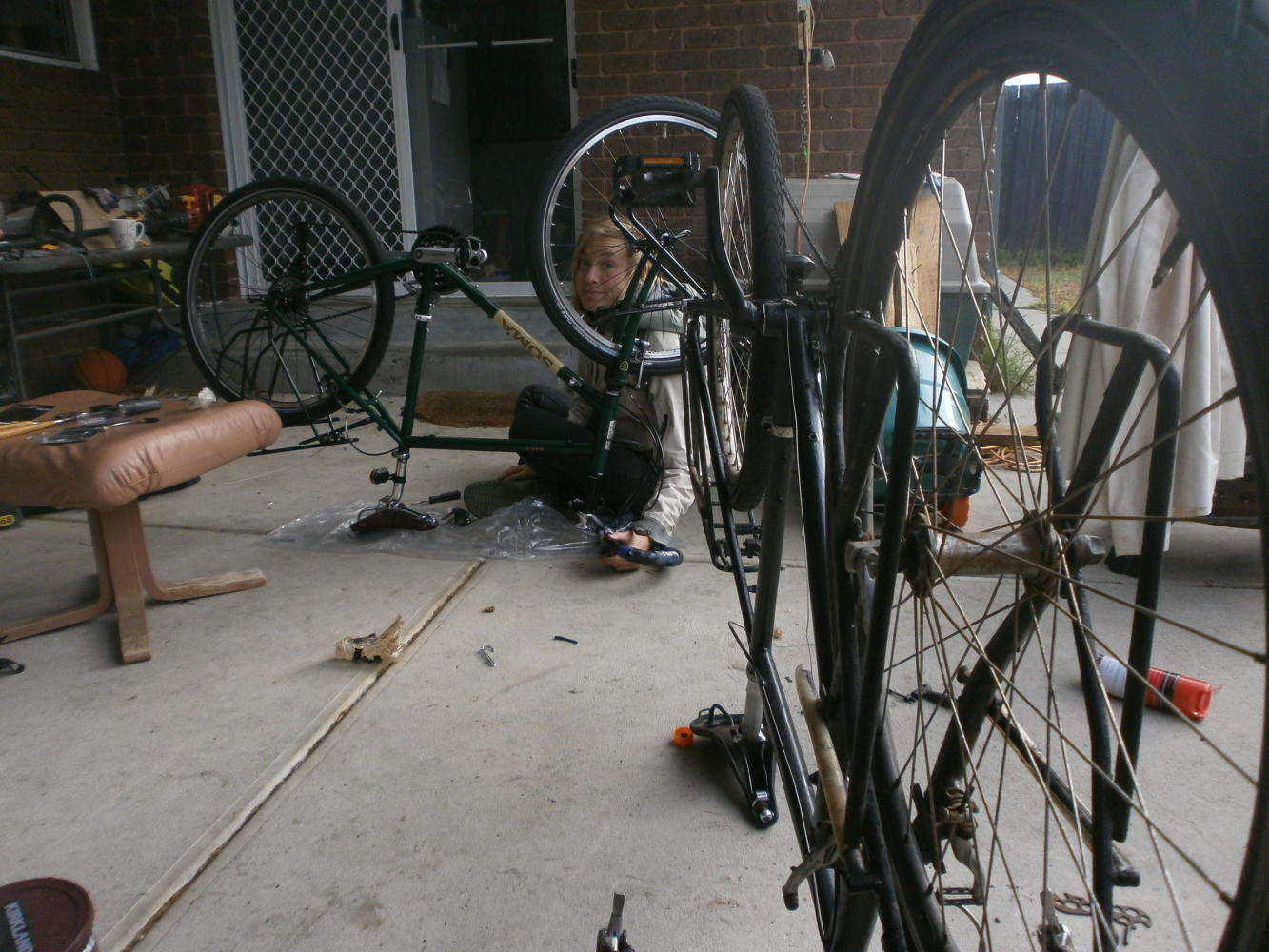 We spent the rest of the day working on our bikes. I had to put mine back together, whilst Dea tried to align her front derailleur properly so that it wouldn’t rub in any gears, which was a frustratingly difficult task. I wasn’t much help, contributing only such comments as “I hate front derailleurs” and “Who cares if it rubs anyway” and “You should have asked Huw.” But eventually both of our bikes were set up and ready to go.