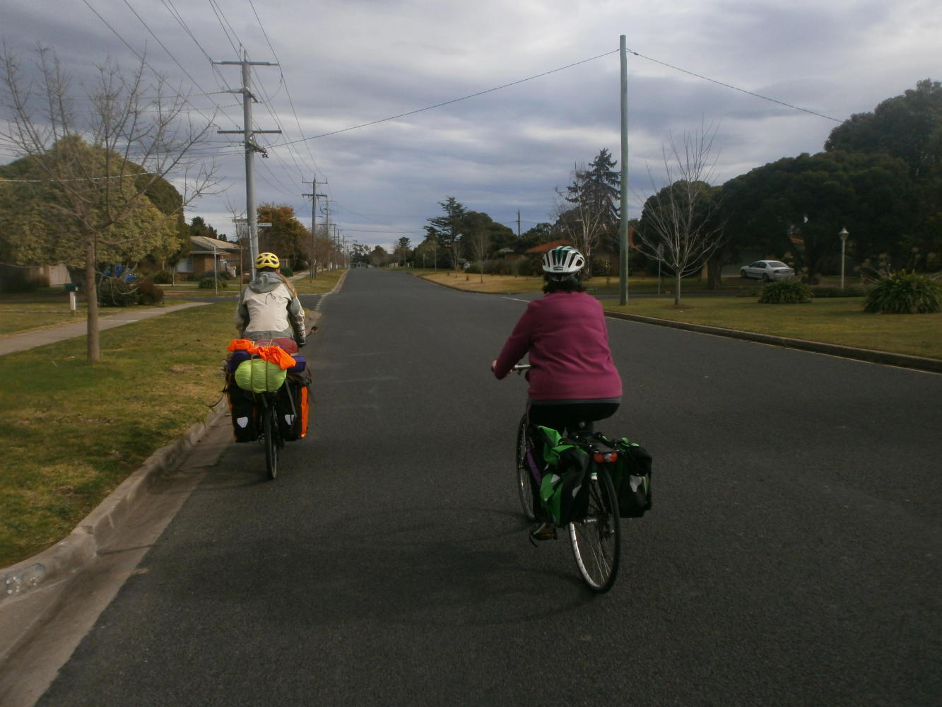 As Dea and I were preparing to leave our lovely hosts and continue our journey Trish offered to accompany us into town and show us some of the sites of Sale. These amounted to a wooden statue and some of the least impressive botanical gardens one could imagine (wrong time of year of course) although I have to say observing Sale’s wild albino peacocks was the town’s saving grace. Then we all went shopping together, a task which ended up taking most of the day. We were looking for a new camping stove to replace my old broken one, and we wanted the same model, because we’d already bought a four pack of butane gas canisters. We went in every camping shop, outdoor shop, hardware shop, bike shop, fishing shop and Aldi shop but with no luck whatsoever. Trish even suggested we go to the gun shop to look there, but I declined on principle. Eventually we were told that the type of stove we were after was no longer allowed to be sold in Australia, which was annoying.