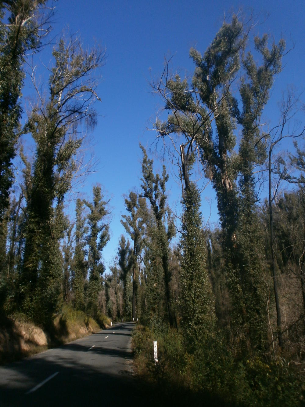 It was such a lovely morning. The road remained almost empty and continued to wind up and down and round and round like a rollercoaster through the temperate rainforests. It was already one of the best roads I’d cycled on in the whole trip, but it got even more extraordinary when we reached an area where there had obviously been a forest fire in recent years. Australian forests are quite incredible in the sense that they are designed to burn every so often, with some trees and plants even having seeds that can only germinate with the help of fire. Consequently, far from being destroyed by the fire, the forest had come back stronger, a literal phoenix from the flames. At first glance it appeared that the blackened trunks of the trees had been overcome by an opportunistic bright green vine that smothered everything, but on closer inspection it became apparent that this was no parasite - it was in fact the trees themselves that were re-growing. New shoots bursting with leaves sprung from the trunks by their thousands, resulting in a fantastic effect unlike anything I had ever seen before. Cycling through this amphitheatre of majestic trees was an experience to be savoured.