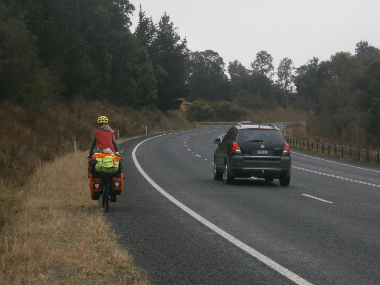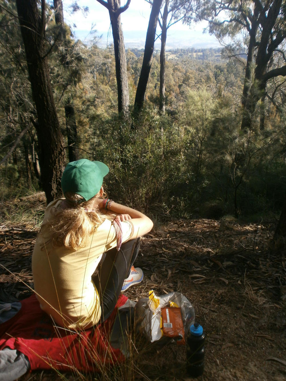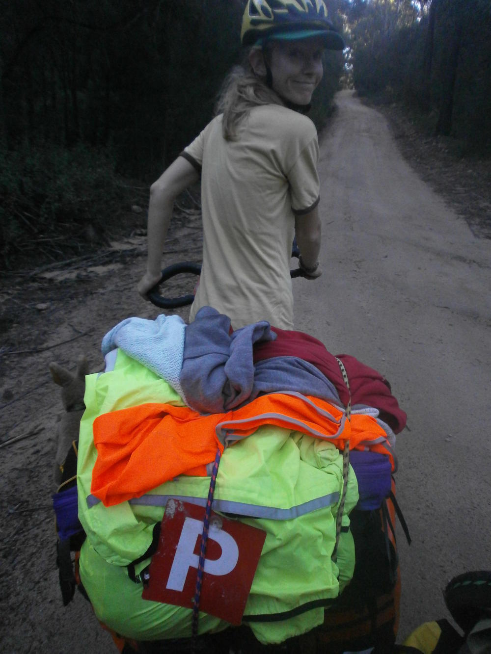 The day ended gloriously for me. At a high point I peered through the canopy and saw a line of water on the horizon. There it was. The Pacific. And as if an omen there was, absurd as it may seem, a boat resting there next to me. It was there, at the top of the mountain, like Noah’s ark run aground. But it was not time to turn our attentions to boats just yet, there was more cycling to do first, and Dea had already gone on ahead. I began rolling down the other side of the hill after her and counted eight kangaroos grazing next to the road. When I caught up to my companion I asked her how many she had spotted but somehow she had failed to see them. Eight points to me, it was certainly my lucky day, and camping in the forest under the stars with my girl confirmed it.