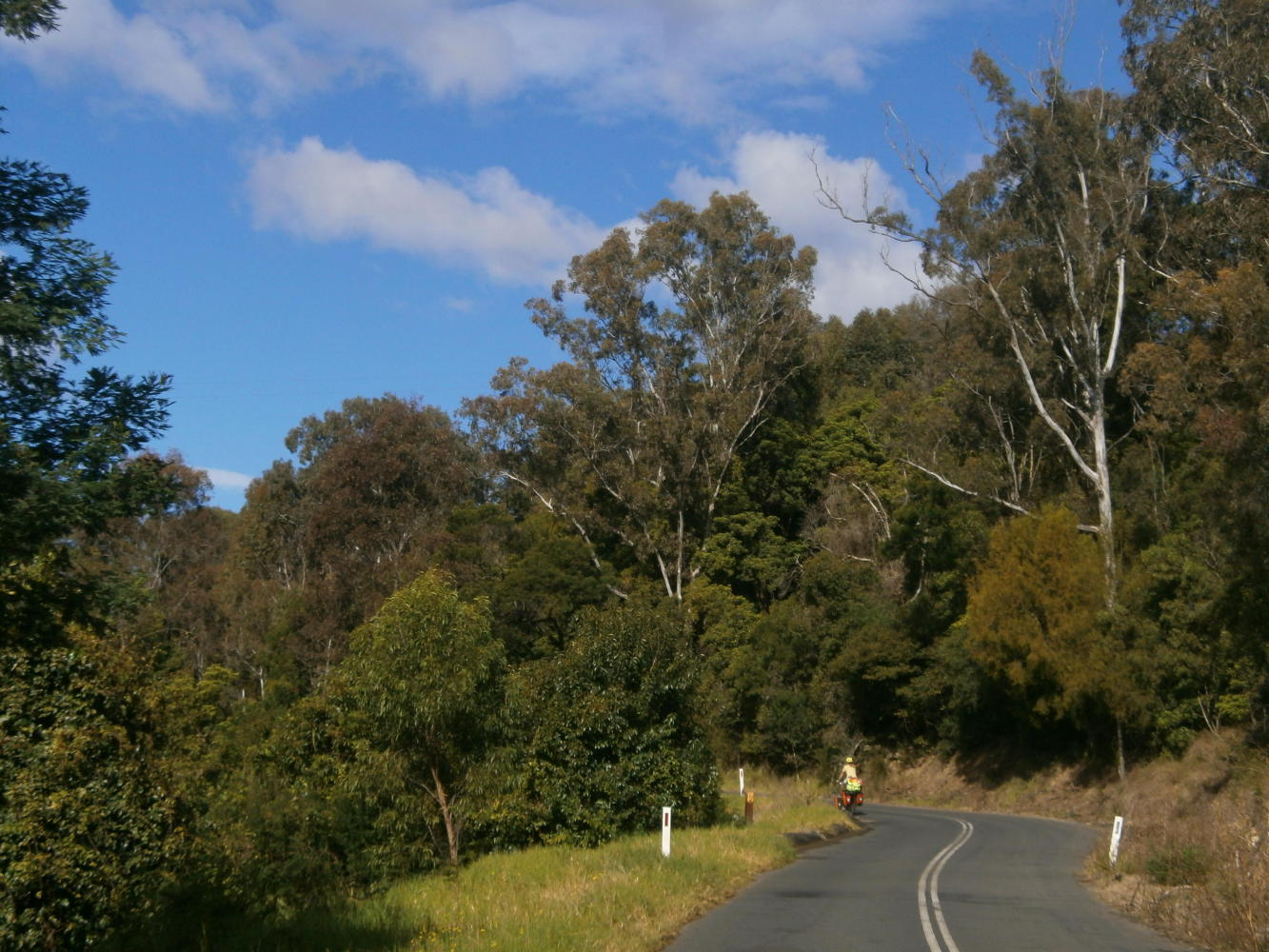 After Bega we headed out of town and once again towards the forest, a gravel road, mountains, peace and tranquillity. At first we planned to cut through east and out to another paved road by the coast, but we enjoyed being away from civilization so much that we instead decided to continue north on yet more forest roads. These grew steadily worse in condition until they were almost impassable, but that was great because there was no traffic at all. It was fun, adventurous cycle touring. We’d been fortunate to find these routes thanks to the free Cartoscope maps that are available at tourist information centres (and for download on the Cartoscope website). I highly recommend using these free maps for New South Wales. For us they were a godsend in showing us these wonderful back roads.