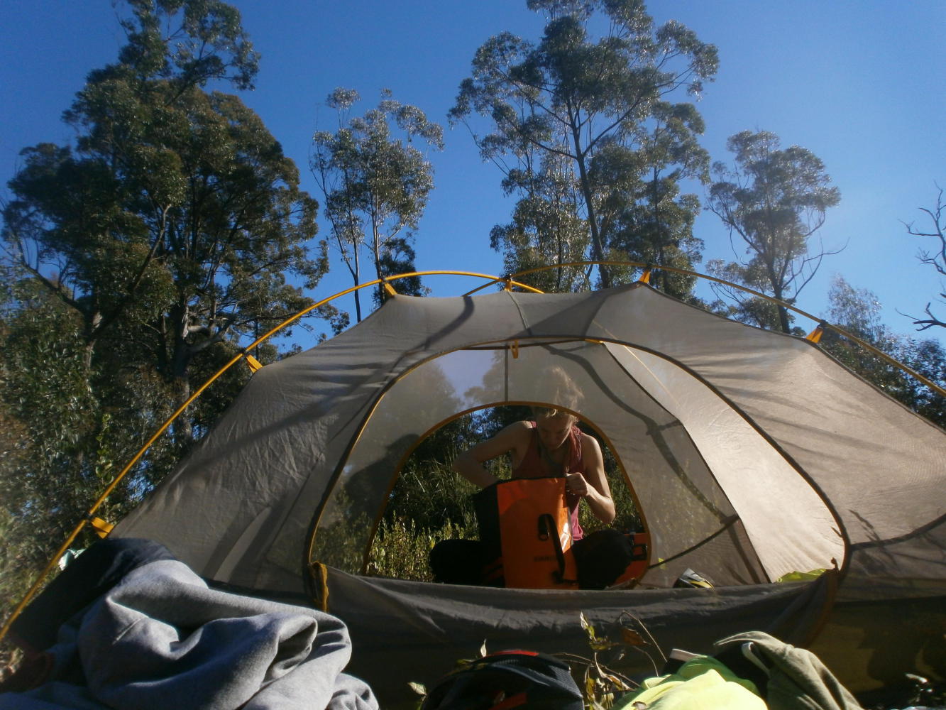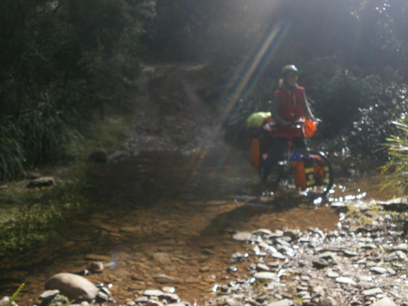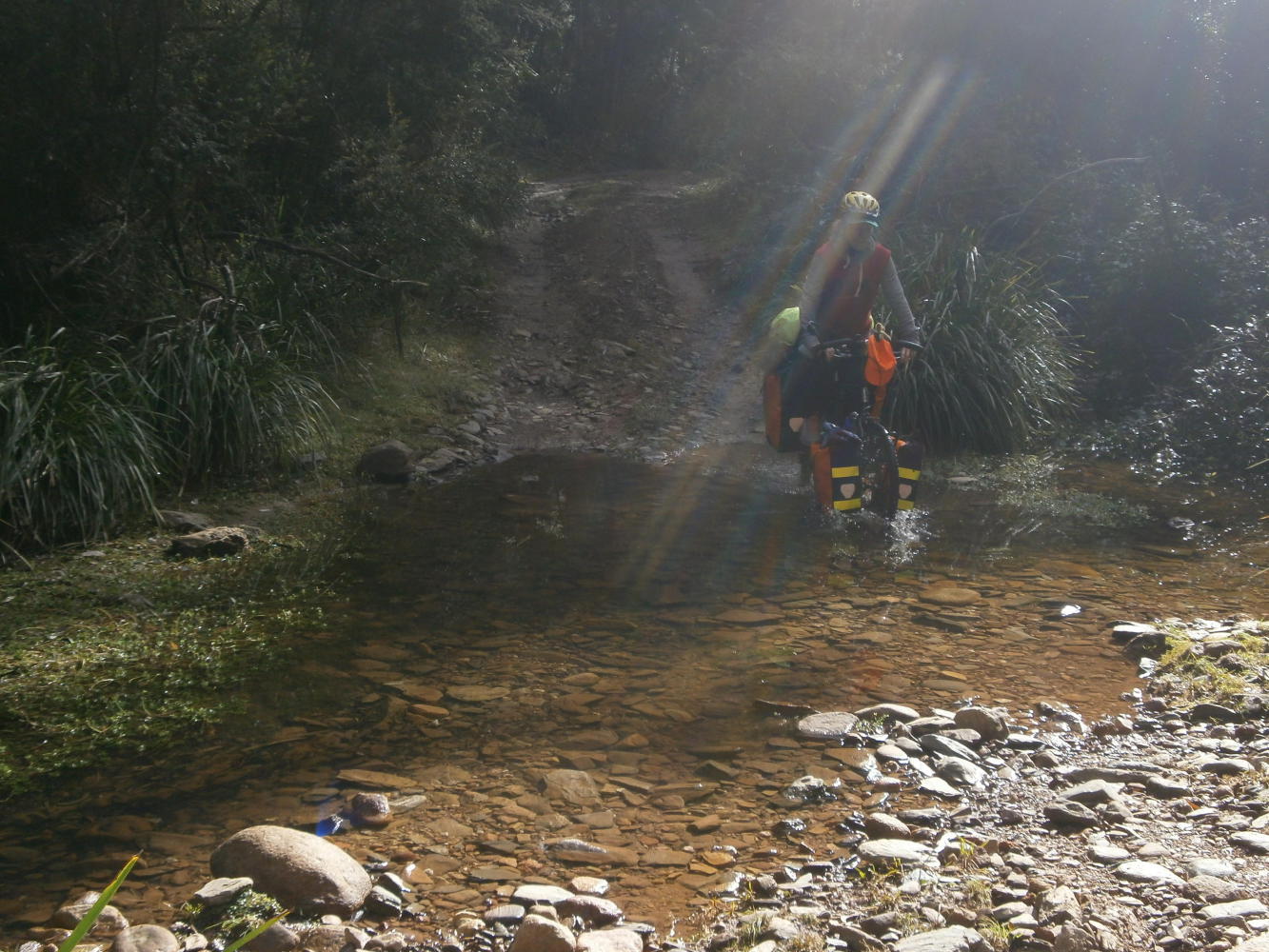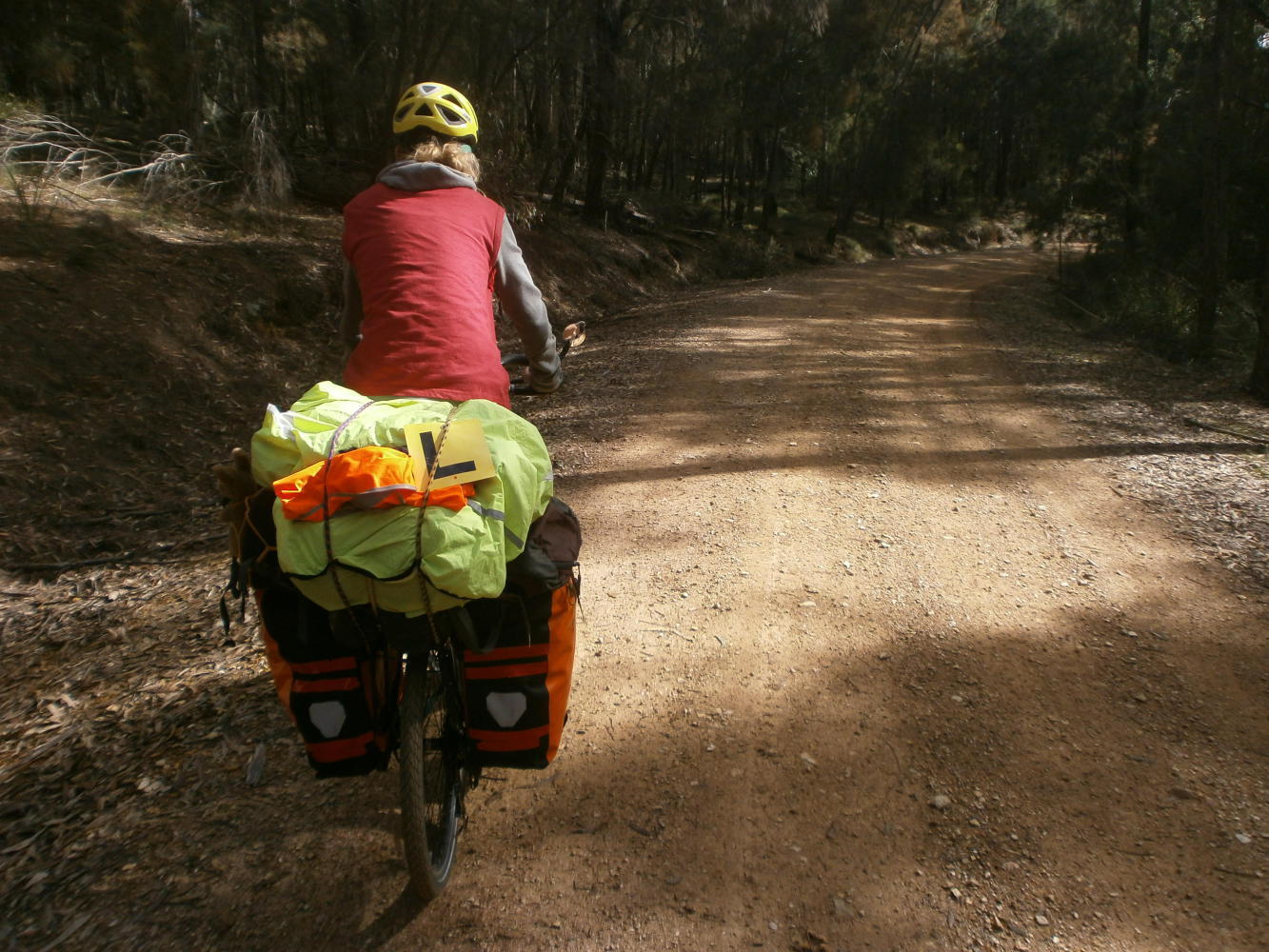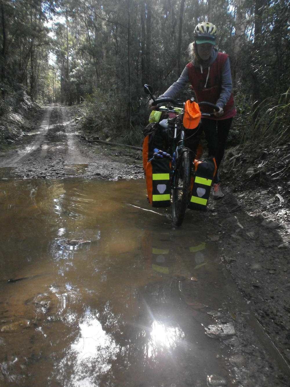 We took our time packing things up in the morning sun. The forest was so lovely and with a warmshowers host organised less than 40 kilometres away it promised to be a relatively relaxing day. Having said that the forest track still provided a few challenges, with more steep climbs and a couple of creeks to be crossed. At one Dea tried to follow me in cycling straight over the rocky creek bed but got jammed halfway and ended up with wet shoes, after which she unfortunately had to turn her P plate around again.