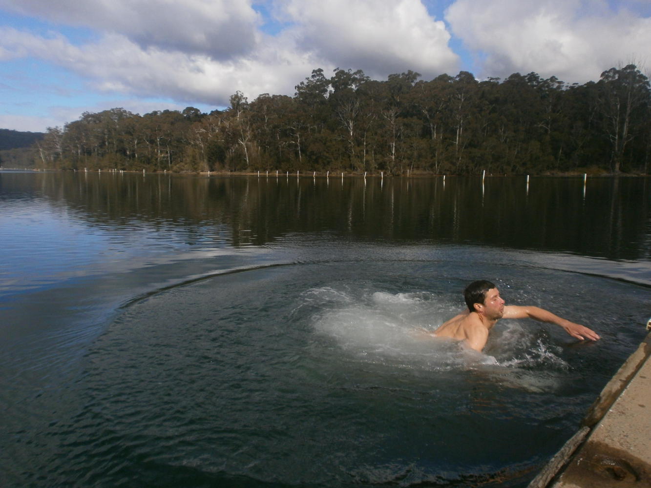 Then, just because it seemed like wonderful things couldn’t stop happening to us, we came to an incredibly beautiful lake in the forest. It looked absolutely like a mirror and was so beautiful I could hardly believe it was real. I simply had to go for a swim and stripped to my boxers and dived in. Oh it was ice cold it really was, and I was also surprised to find it was salt water. It was like a fjord, connected to the sea somehow through the forest. I clambered out again as fast as I could, numbed by the cold and screaming “Sharks, Oh God, there could be sharks!!!”