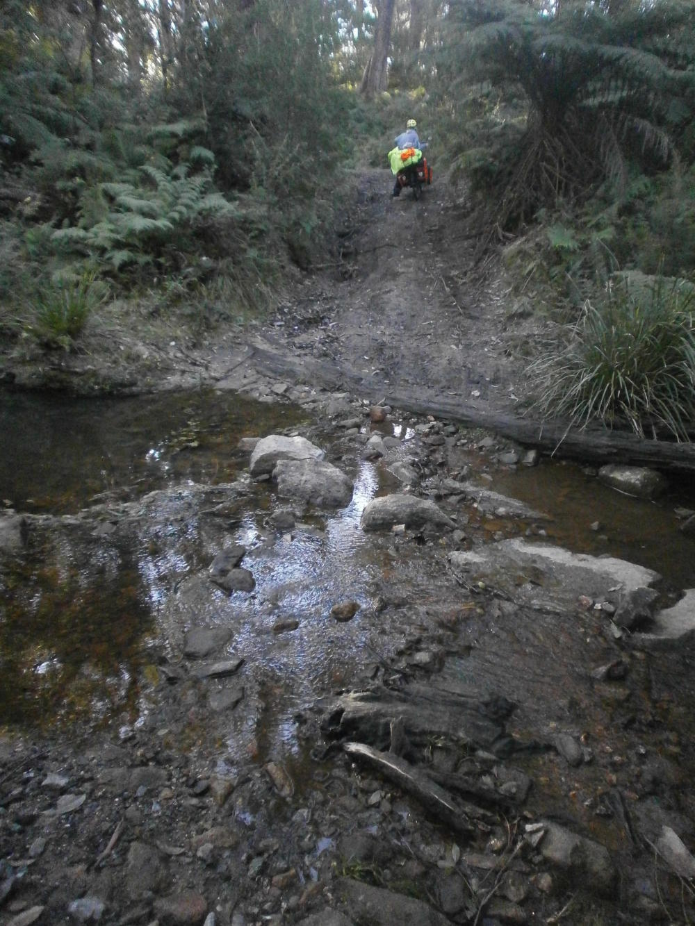 We carried on following the gravel roads for the rest of the day even as they got progressively worse. The track we were following narrowed and grew more overgrown and unmaintained and eventually we found a white piece of tape stretched across it indicating that perhaps the way ahead was closed. This didn’t bother Dea in the least, she pressed on regardless with typical determination. A bumpy ride followed, several water crossings too, as we descended deeper and deeper into the forest, perhaps never to return…
