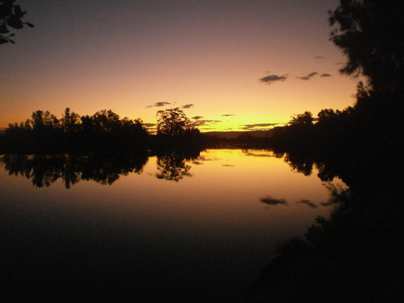 We decided to press on quickly and make it through the big town of Nowra before dark. This we did, although we were certainly pressed for time as we joined the rush hour traffic flowing through the town and out the other side. The last of the daylight was almost gone by the time we escaped onto a smaller road where we hoped to find somewhere to camp. Alas we now found ourselves surrounded by fields and we were fenced in on both sides, with nowhere to put a tent. Consequently Dea finally got to fulfil her ambition of cycling under the stars.
