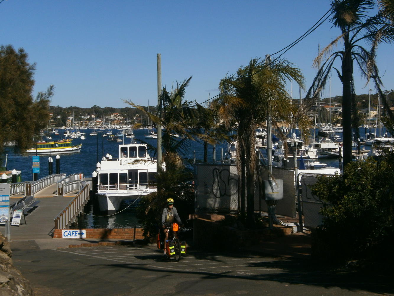 Reaching Sydney was a milestone for the both of us. I knew it meant a lot to Dea to have made it from Melbourne to Sydney – the smile on her face when we’d first spotted the skyscrapers ahead of us on the horizon from the National Park gave that away. It had been a lovely morning cycling through that forest too, on a quiet road populated primarily with road cyclists out of the city for a ride of their own. From the northern edge of the park we had to take a passenger ferry to reach the first suburbs of Sydney itself. It was a bit of a shock to go from the peace of the National Park to the hustle and bustle of the big city, but fortunately we had bicycle paths to enjoy most of the way from then on.