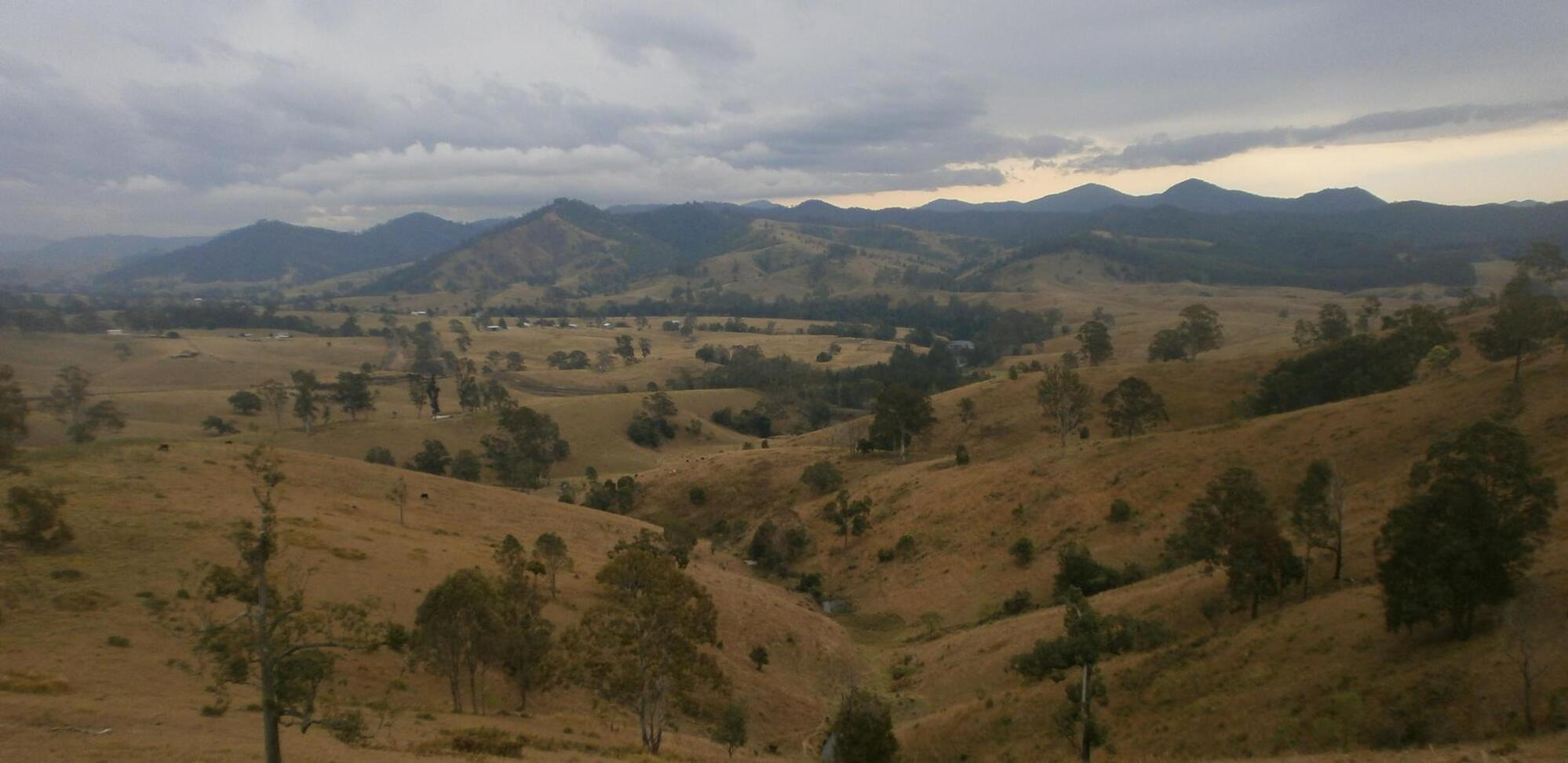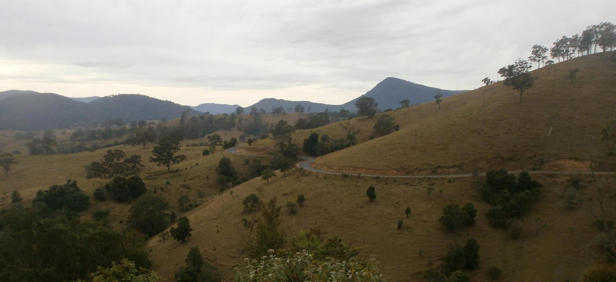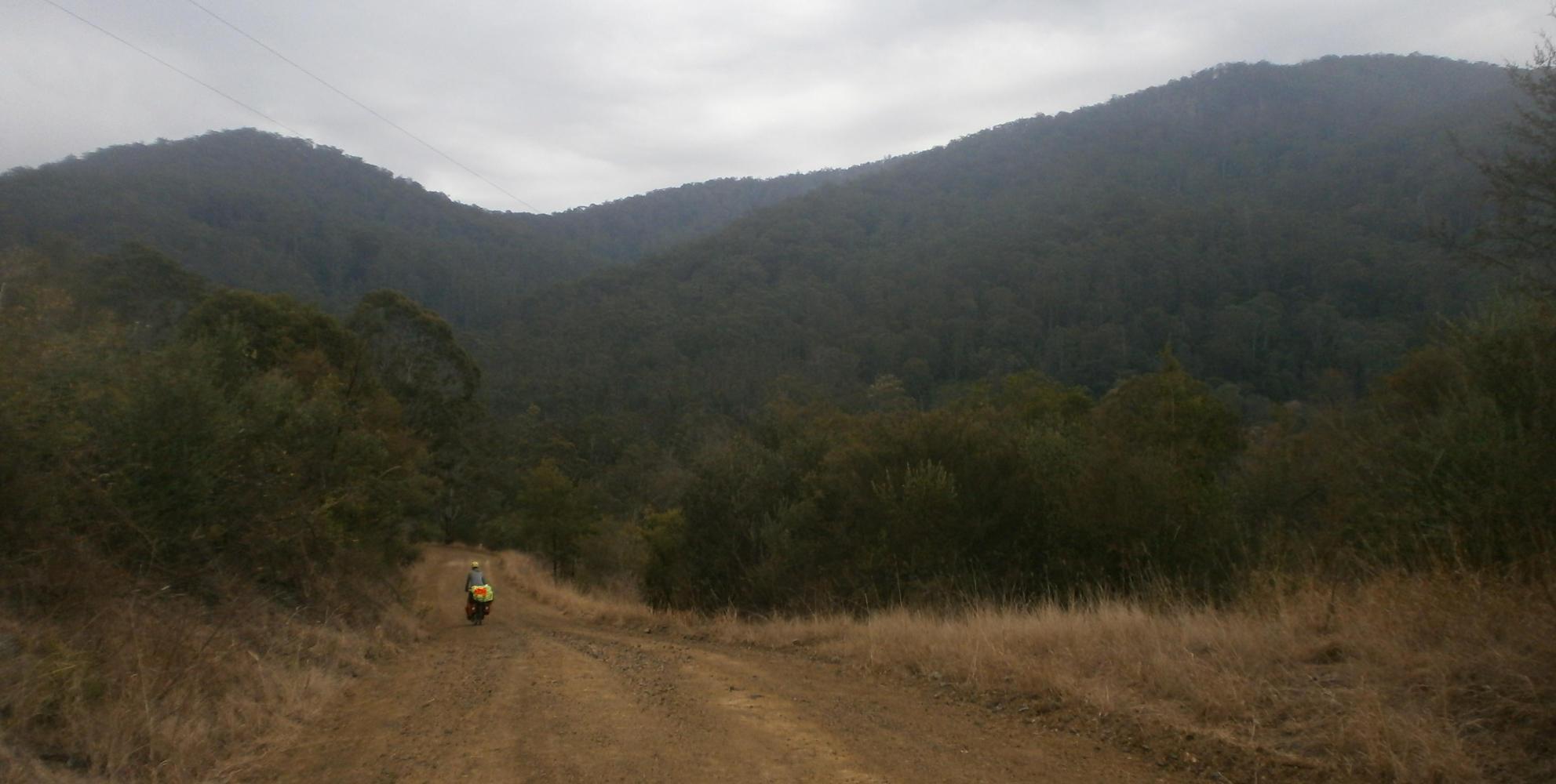 Luckily she drove off quickly and my nerves were soon calmed by an extremely pleasant morning of cycling. Despite overcast skies the scenery was delightful. A winding road took us over yellow hills dotted with trees and kangaroos. With the road being very quiet Dea and I resumed our kangaroo spotting game, a game which we had restarted after I’d won the last one by getting to a hundred. In the new game Dea had built up an impressive 39-26 lead, doing a fantastic job of spotting the marsupials leaping about the landscape. Then the paved road ended and we cycled on gravel roads which were even more adventurous and I thought about how, in all honesty, the east of Australia had provided as lovely a few weeks cycling as I’d experienced anywhere in the whole world.