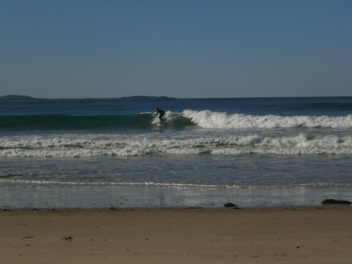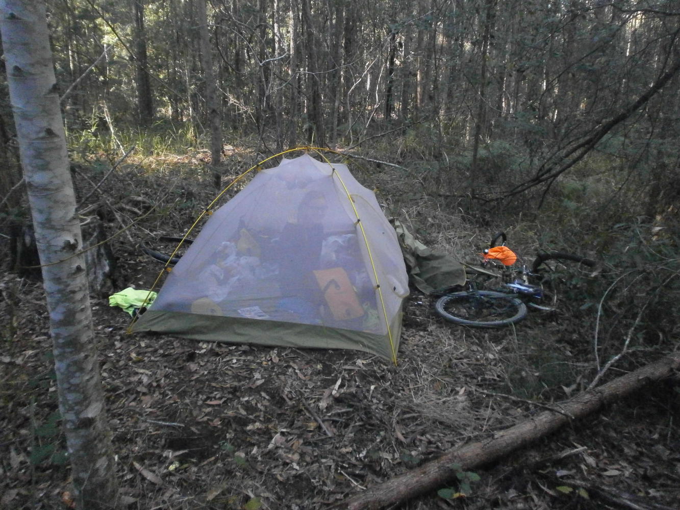It was a restless night for the both of us. A great many possible scenarios went through my head. With Dea unable to cycle there was a real question mark as to how we were going to make it the rest of the way to Surfers Paradise on the Gold Coast, but there was also the more pressing matter that we were running low on food and water. By morning Dea's wrists had not improved and it was time for me to suggest the plan that I had formulated. Luckily the big town of Port Macquarie was only 25 kilometres away, and I proposed that I leave Dea alone in the tent all day while I cycle there for supplies. I could also try to organise a place for us to stay in Port Macquarie for a few days so that Dea could recover properly. Although leaving Dea alone in the woods all day was not without its risks (she could, for example, have time to build up a considerable lead in the kangaroo-spotting game) it was a plan that we both agreed was suitably cunning.