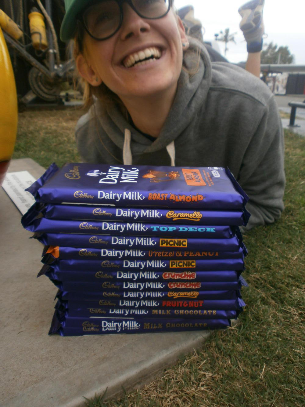 It was with some relief that I found Dea just where I had left her, and even better news was to follow - she hadn't seen a single kangaroo. And what was more her wrists were feeling a bit better and, after another night in the tent, the next morning she said she felt up to cycling the 25 kilometres to Port Macquarie. We strapped some sponges to her handlebars to try and soften the impact on her wrists, and then along the way she stopped often to adjust the angle of the bars and the brakes, looking for a less painful option. I think it wasn't the most enjoyable 25 kilometres of the trip for Dea, but she made it to Port Macquarie and so when I went into the supermarket again and saw that a certain popular brand of chocolate was on offer I decided to get a little bit to try and make Dea feel better: