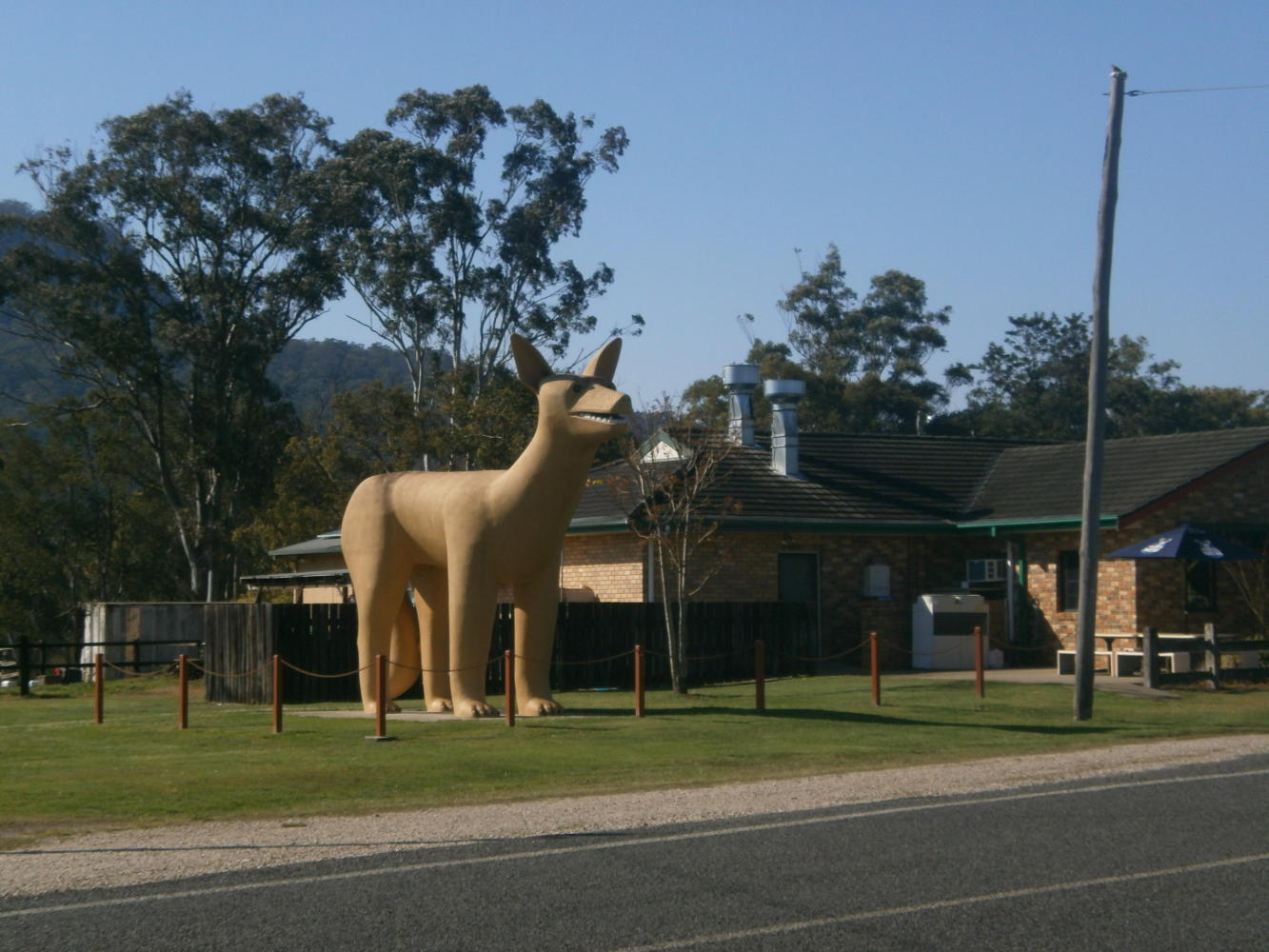 We had planned to get up at four in the morning and cycle under the light of the moon. I forget why. But when we woke at four there was lots of rain, and wind, and thunder, and so we thought 'nah, let's not do that.' After a bit of a snooze we woke up again at five thirty, and the weather was much improved, so we got up and cycled with the first rays of the new morning. The road was quiet until Nana Glen, then it got busier to Glenraugh, then we had breakfast, then we carried on, then we saw a big dingo.