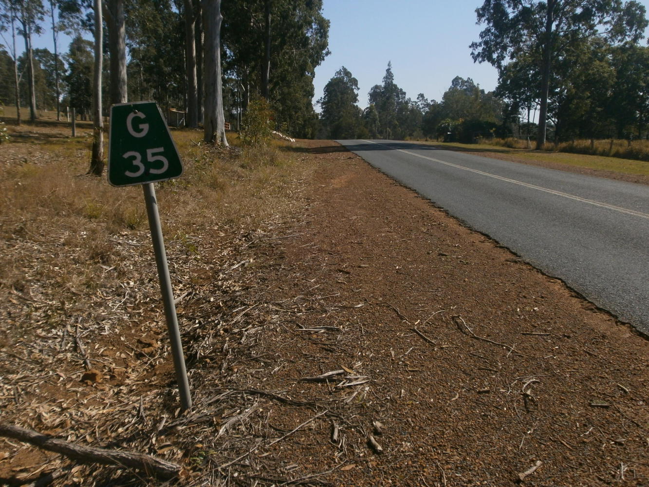 We cycled out of Grafton and turned off onto a really tiny road. It was so lovely – right next to a river that reminded me of the Danube. We were looking for a place to camp but unfortunately there was only farmland and we were horribly exposed to the wind and so we had to keep going until we were back on a main road. Here a car pulled over and an older gentleman came to speak with us. He was a cycle tourist and he wanted to help, but he wasn't much help, because he kept telling us to keep going straight on the busy road even though I could see on the map that there was a much smaller road turning off that would take us into the forest which would surely be ideal for camping. The old fellow ignored that idea, however, and insisted we'd better stick to the main road. Despite the evident problems of heavy traffic and nowhere to camp he didn't know anything about the small road and thought we might run into trouble on it. Luckily we weren't obliged to follow his advice however, and once he'd left we just turned off onto the small road anyway.