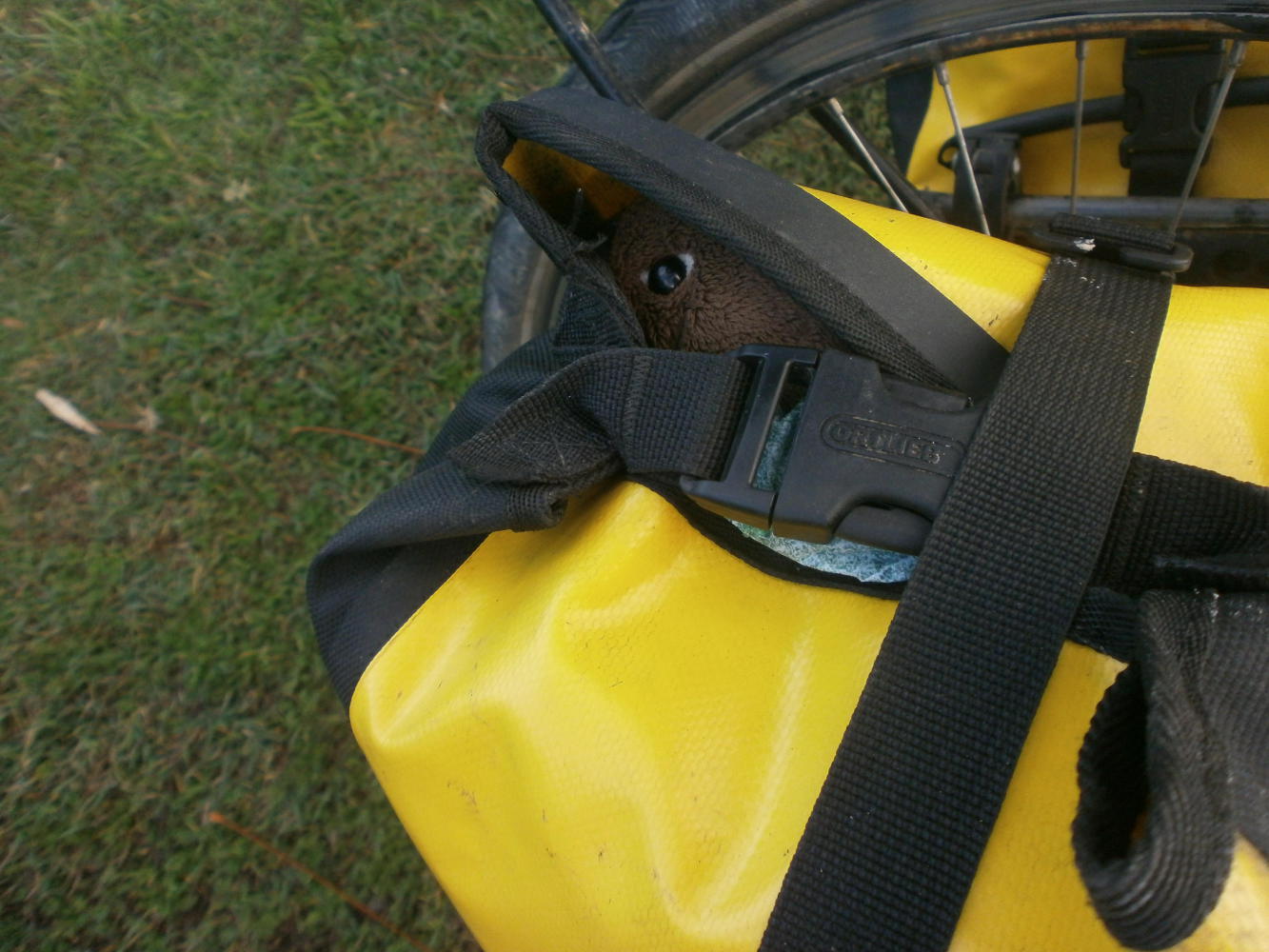 Our merry band of cuddly toys all had their own places. Wilma the wombat sat watching the world go by on Dea's handlebars whilst Karen the kangaroo slept under some mesh on the back of her bike. I kept the other two in my front panniers where I could see them, Kevin the koala peeking out on the right and Mr Plopples the platypus safely secured under the strap of my left bag. Except Mr Plopples the platypus was now most definitely no longer safely secured under the strap of my left bag. He'd gone AWOL. Dea and I exchanged worried glances. I gulped. I'd lost Mr Plopples.