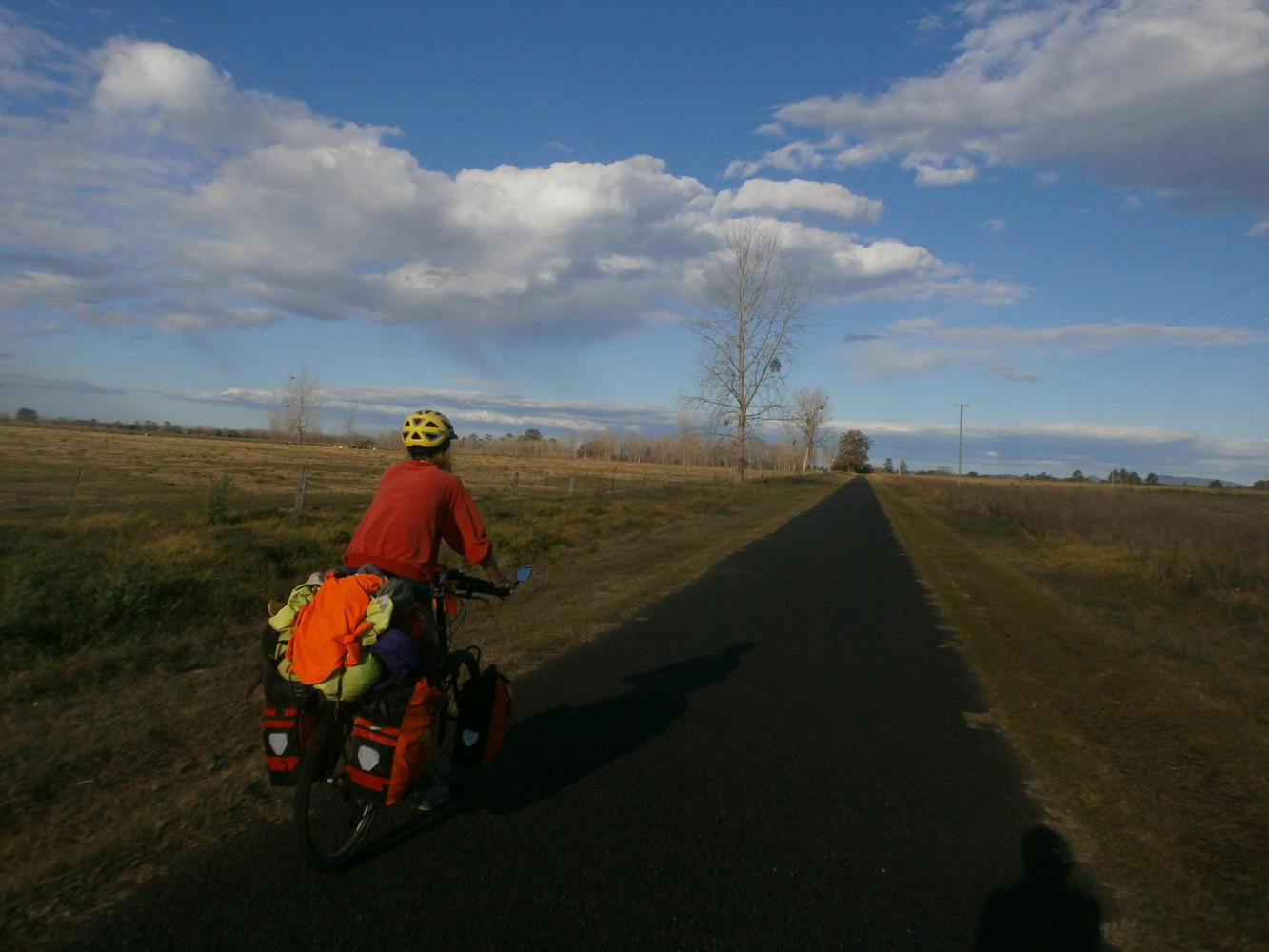 We next went to Grafton information centre, where we gathered enough information to calculate that we were just five days from our destination of Surfers Paradise. Then we had to cross over a big bridge and almost took the road, which would have been a mistake, but luckily a car pulled over to us and told us that there was a bike path we should take, which was much better. The bridge was crazy because it was a railway bridge and a traffic bridge, with the traffic being directly over and above the railway. The bike path runs alongside the railway, which is why we nearly missed it. Don't do that! Cycling in the road so high up in the wind would have been a BIG mistake.