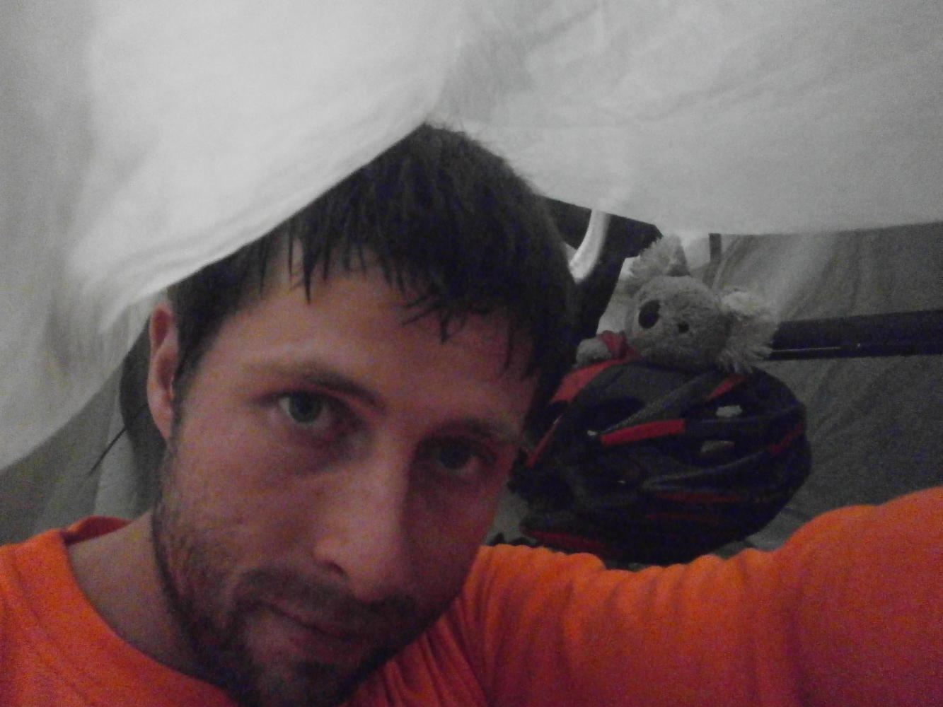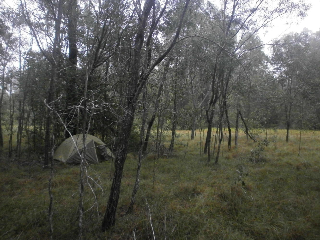 I was wet and miserable and scared as the storm raged, but eventually the worst of it passed. The rain continued, but with sunset drawing close I decided I'd better get on and find somewhere to camp regardless. I had been aiming to get to the same spot that Dea and I had camped at before, a nice clearing beside the forest, and I'd seemed well on course to make it. Now I was pushed for time. The forest was thick and there were not so many other options anyway, but our clearing was not appearing. I rode and rode, on a surface that had become much more difficult to cycle on now that it was saturated with water. It grew dark, but still I cycled determinedly on. Then finally the clearing did appear and I was able to pitch the tent properly and crawl in. All of my things were soaked and all alone this was not the romantic campsite I had remembered.