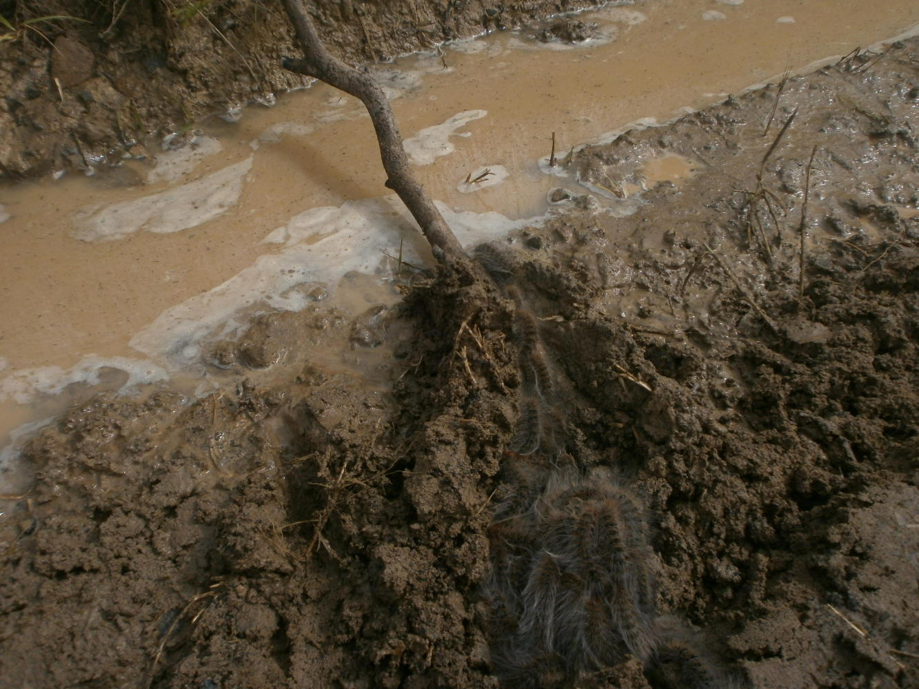 I changed tack, and spent some considerable time constructing a causeway out of mud, and a path leading to it. Then I tried to poke (with a stick, from a safe distance) a caterpillar to break it out of the line and get it to lead the ones behind it to the causeway and the safety of the far embankment. Sadly the new guy was no leader, and this too met with failure. It seemed like all these caterpillars really wanted to do was follow each other around in circles. So I left them to it.