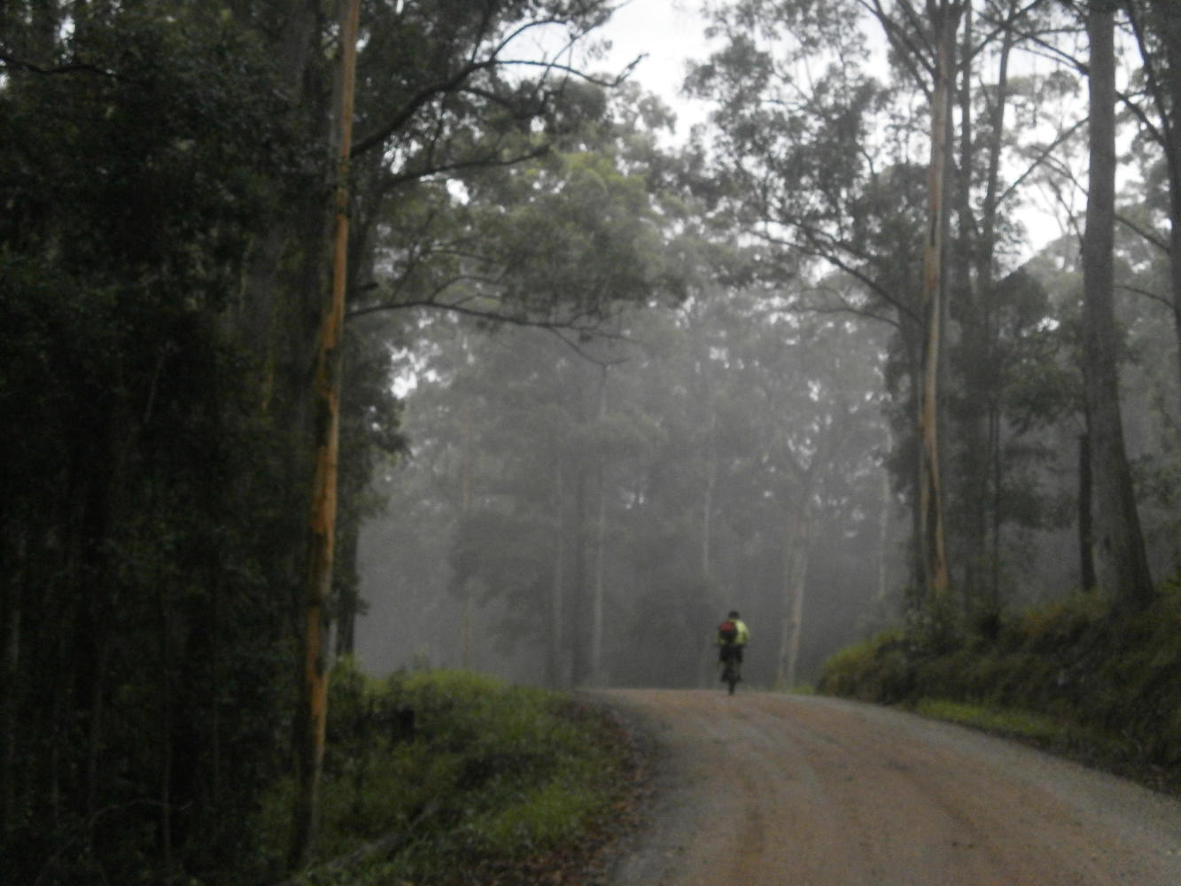 As it turned out, thankfully, Stephen was right. We breezed past the final defiant 'road closed' sign and kept going on a grassy track that, though not in great condition, was definitely cycleable. I kept waiting to fall off the edge of a cliff but it never happened, and before long we emerged safely out the other side.