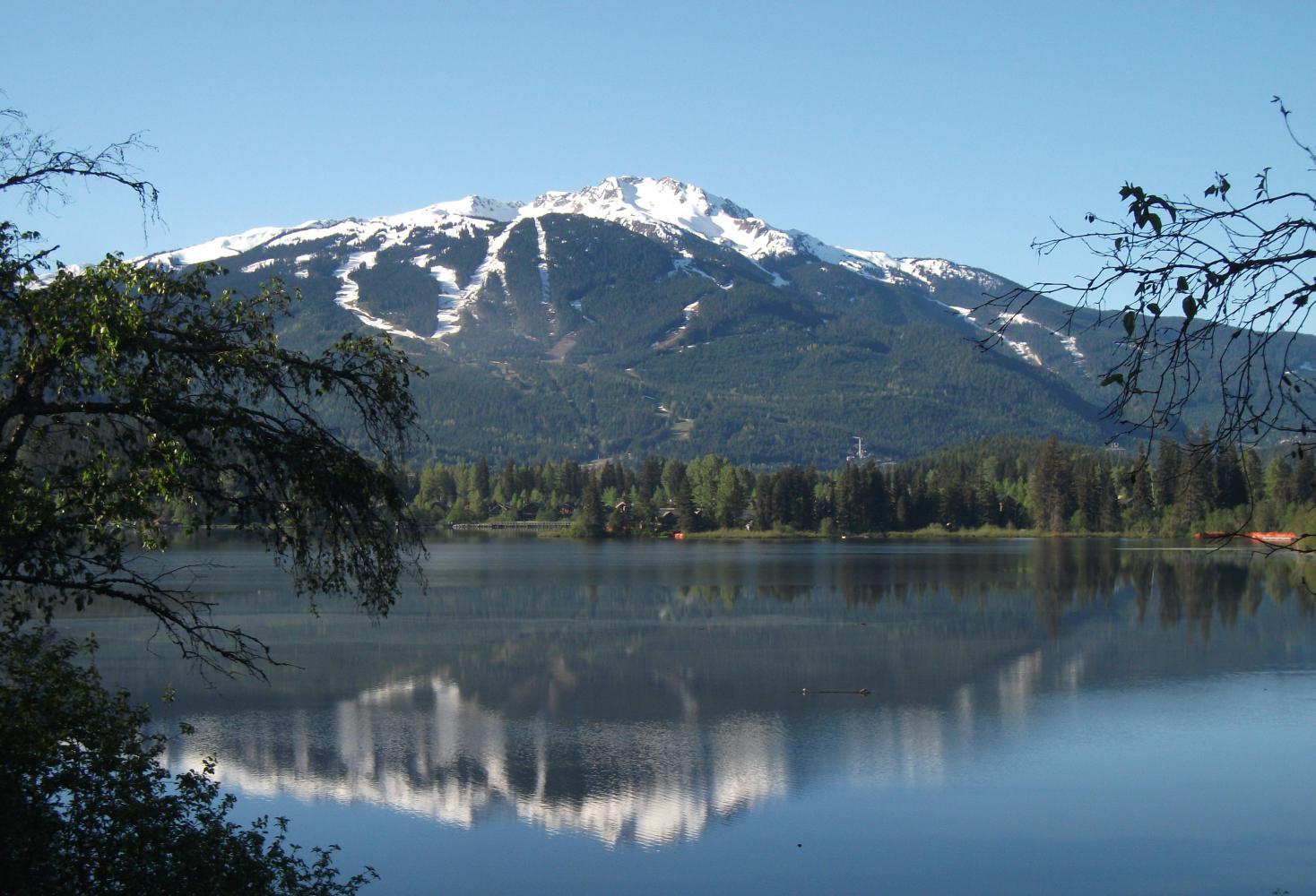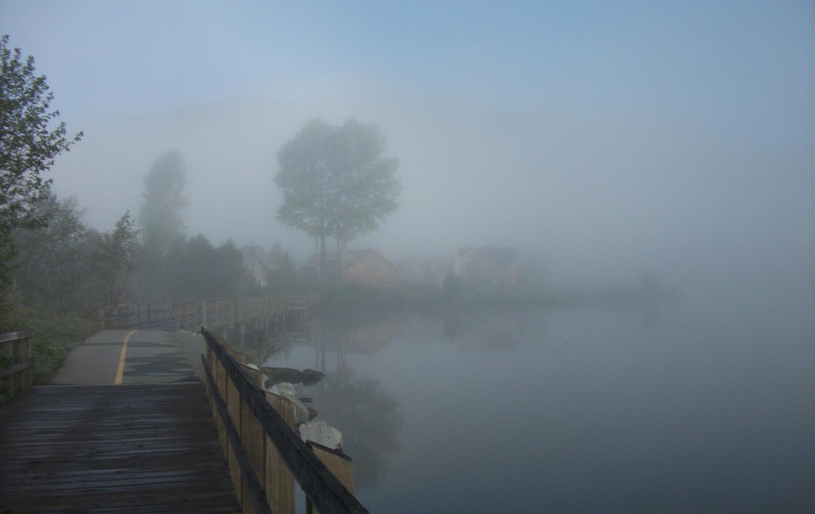 I continued my ride, and followed the bicycle path around the edge of the lake. By the time I was on the other side of it the fog had completely cleared, leaving me with even better views of Green Lake, reflecting the mountains behind it like a mirror.