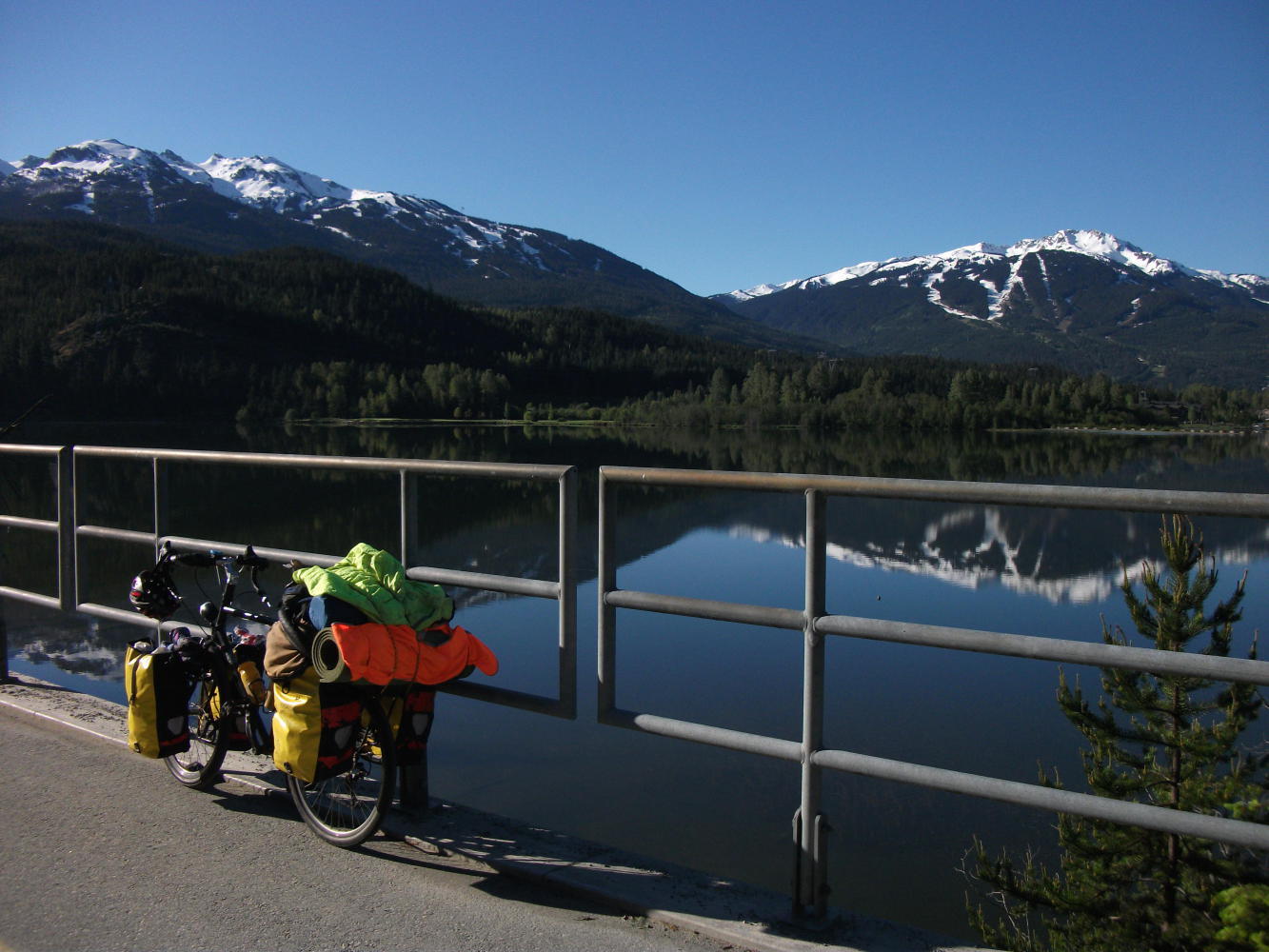 Being a ski resort town Whistler is of course at altitude, and with the skies having cleared up after the storm it was a bitterly cold night. I slept badly and woke up in the morning frozen. There was a frost on the tent and the ground near it. But I got up and continued to cycle, because I had nothing better to do.