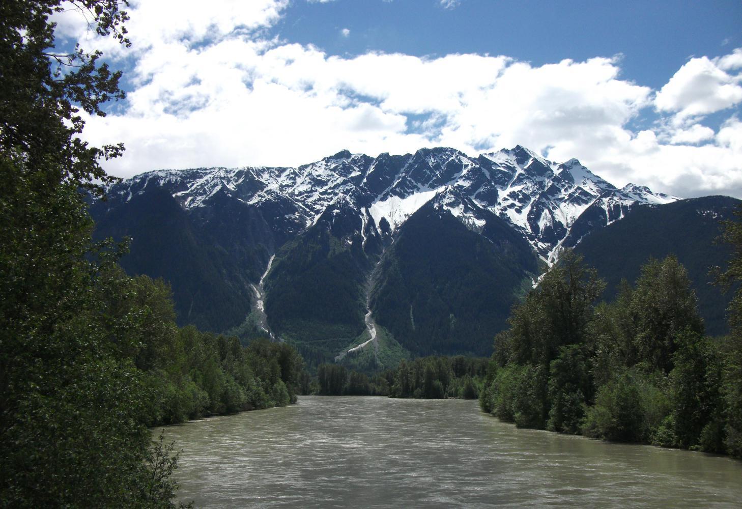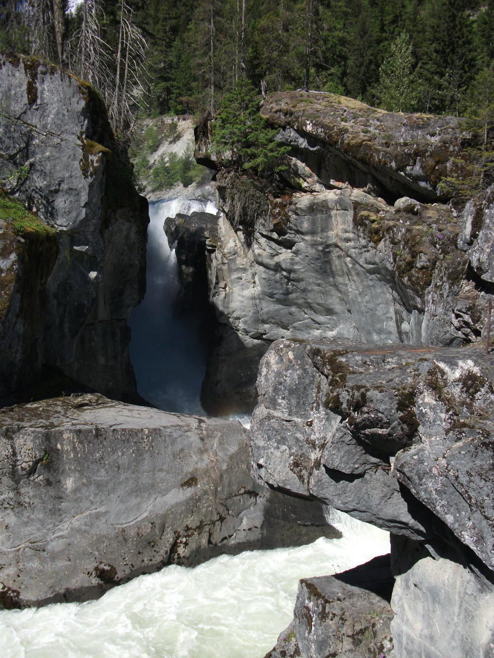 Soon the bicycle path merged into the 99 highway again, though the traffic was now significantly lighter than it had been before Whistler. I followed the highway all the way to Pemberton, stopping only to visit my daily waterfall. Today it was Nairn Falls, which I'm sorry to say was the worst of the lot so far. The best thing about it was the hike that was required to get to it, and the fact that nobody else bothered with it, so I didn't have crowds of tourists around me to share in my disappointment.