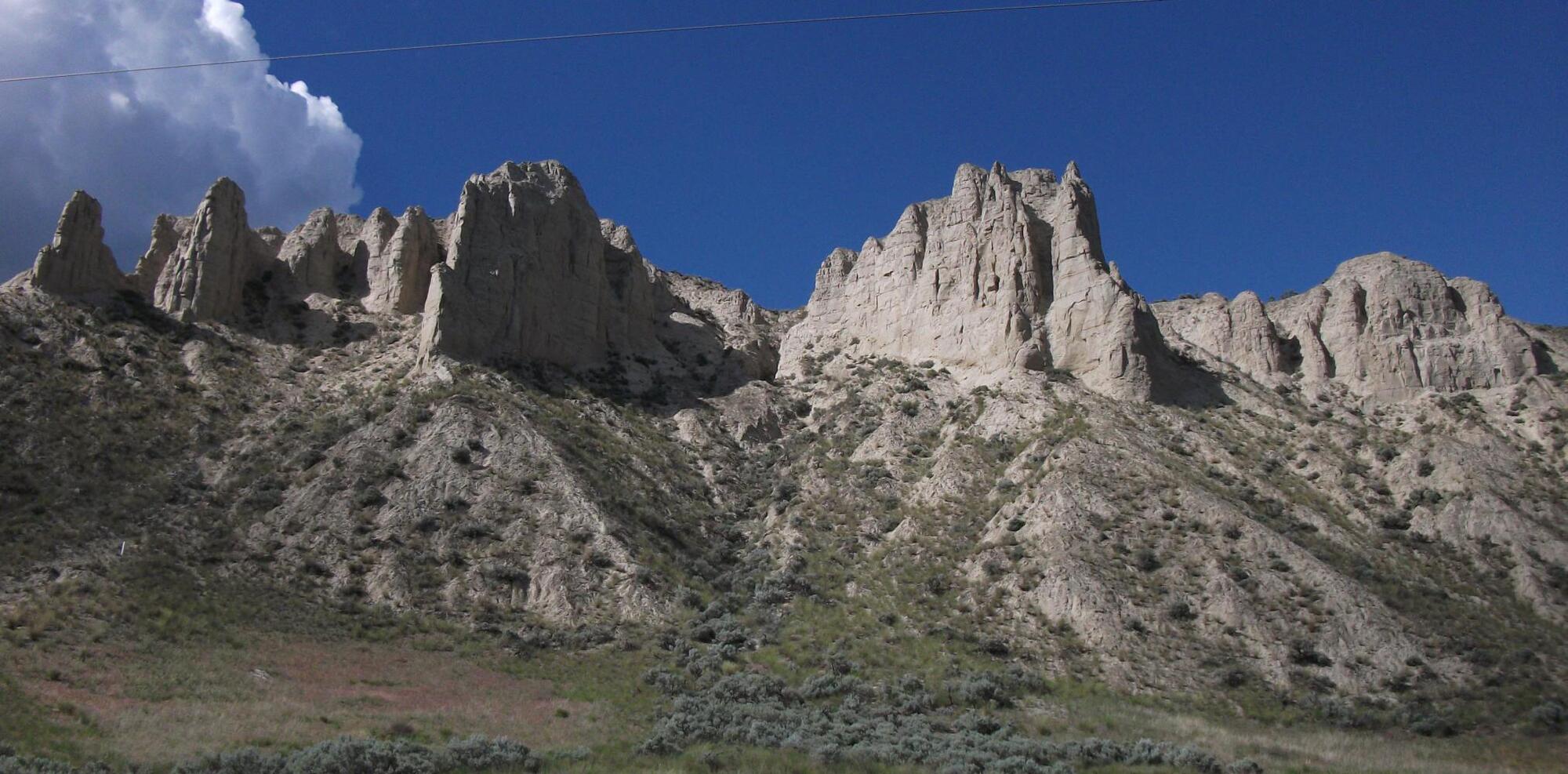 I left Kamloops behind once and for all, on a different road than that which I'd taken before. The last time I'd headed east out of the city I had done so on the highway on the south of the river. I now realised that the me of five years ago really was a fool, because on the north bank was a much nicer minor road with almost no traffic. And what was more it took me past rock formations that would have not looked out of place in Cappodica. These were impressive enough by themselves, but to make it even more amazing I soon spotted a herd of bighorn sheep grazing beneath them. Bighorn sheep had been one of the few animals I'd missed out on seeing the last time I'd been here, so I was especially pleased to spy them now.