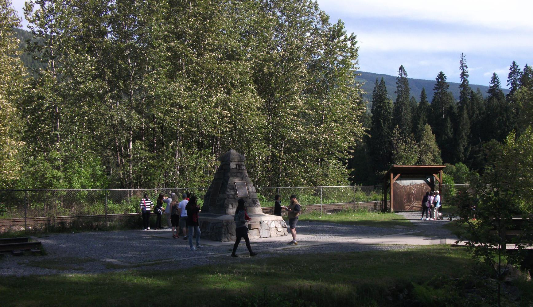 There was one moment of note along my route – the point at which the final stake was placed on the Trans-Canada Railway line. It was at the top of a pass, I think, which was funny because the road had been so gradually graded that I hadn't noticed I'd been going up a pass. There wasn't a lot to see at this historical site, although it was popular with Chinese tourists. The stake itself had been spray-painted gold, which was really lucky, because otherwise it would have just looked like all of the other stakes along the track. Still, what a marvellous feat of engineering, and what a momentous occasion it must have been when this line was finished, completing a continuous ribbon of steel all the way from the Pacific to the Atlantic.