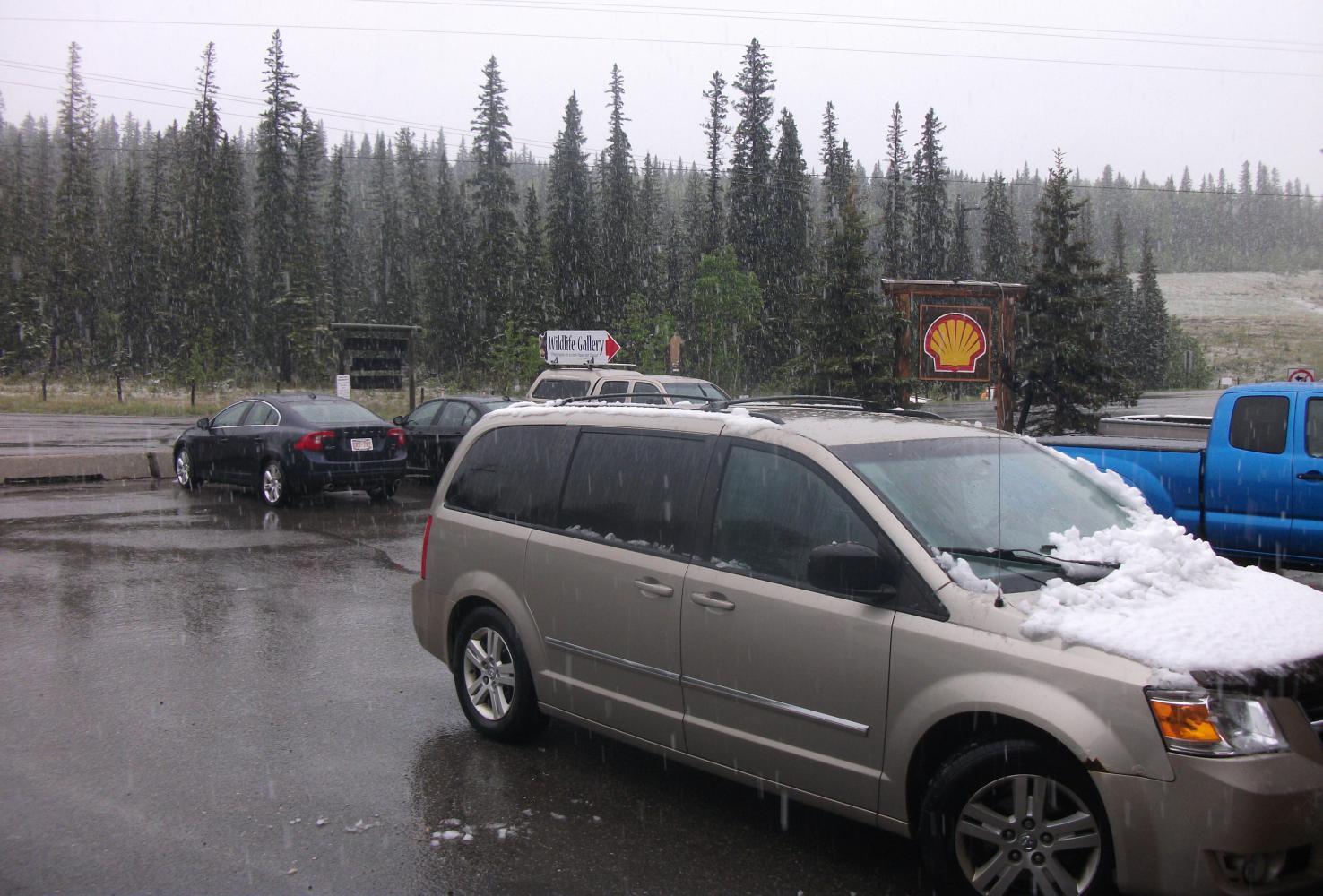 The small community of Bragg Creek appeared just as the rain once again turned to snow and what was essentially a full-on blizzard began to whir around me. I hurried into a gas station to dry my feet and change my socks in the washrooms, before settling into the Subway next door. Now I had somewhere warm and indoors, with food and wifi, and everything was looking much better. Apart from the weather of course, and the fact that all of my things were wet. I needed a plan, and I came up with one when I noticed a warmshowers host 40 kilometres south along the road. I wrote them an emergency request and went out to brave the elements once more.