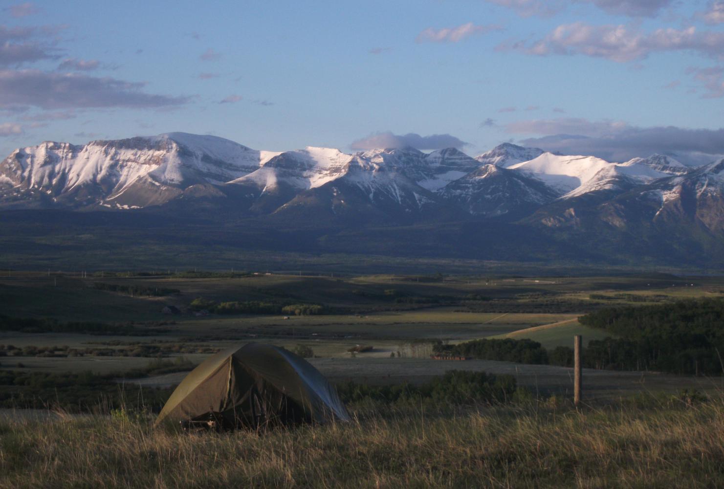With the wind now at my back I made good progress and reached the fairly big town of Cardston by evening. There had been nowhere to camp in the fence lined open fields, a problem that seemed like it would continue every evening for the foreseeable future, and so I turned my attention to urban wild camping. I wasn't quite prepared to follow Vivian's lead and pitch my tent in the front of a gas station forecourt just yet, however. So after a thorough scouting around the town I found a good spot behind some trees on a wide footpath where nobody seemed to walk. It was a decent spot, and a good end to a nice day. But Waterton had definitely been the last of the mountains, and a new challenge lay ahead.