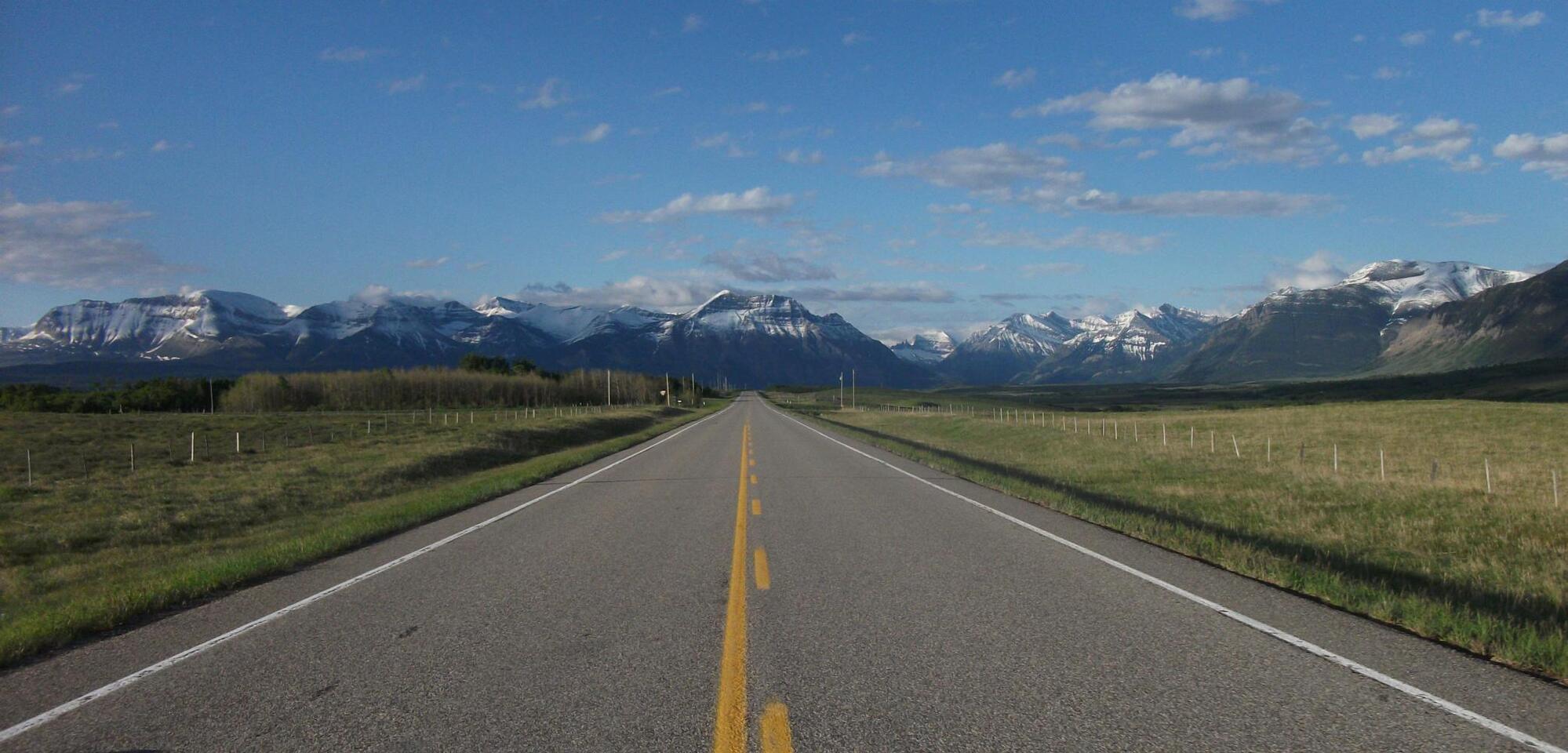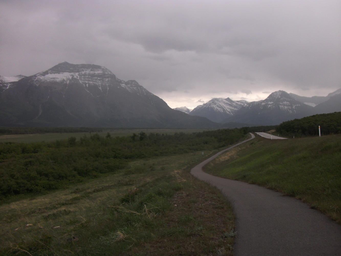 The rain was torrential, a veritable monsoon, and I spent a couple of hours on that bench which fortunately at least had access to a wifi connection. It was a shame that this weather had arrived, as I had hoped to spend the afternoon doing more hikes and enjoying my time in what was clearly a very special little gem of a National Park. Unfortunately the weather didn't want to play ball, and the forecast showed that the rain would continue all day, albeit less forcefully. So when it did begin to ease off I cycled out of Waterton and headed for the prairies. Before too long I'd left the cloud-covered mountain peaks behind and watched as they disappeared behind me as I rolled out towards the flat grasslands that now stretched ahead of me for a couple thousand kilometres.