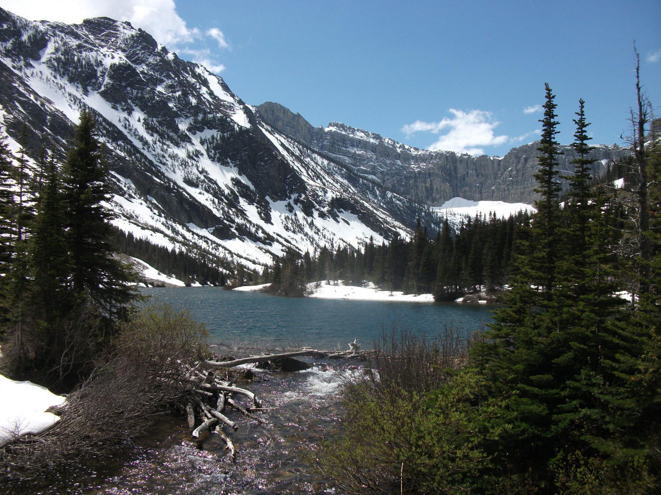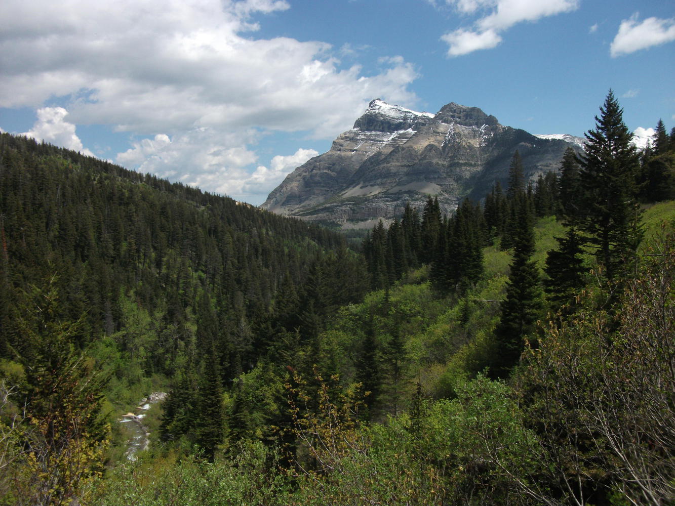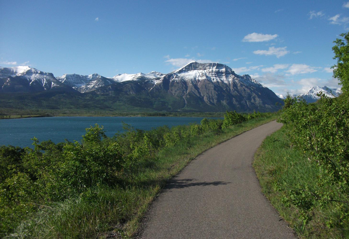 The wind was strong against me as I cycled, but that was okay because it was only ten kilometres before I entered the National Park. A cycle path beside the only road now led me past the first lakes and into the mountains until I arrived at Waterton village. A small settlement of chalets and hotels, this place served as the base for the relatively few tourists who make it to this slightly out-of-the-way National Park. I had no great reason to stop, other than to fill my water bottles and eat some breakfast.