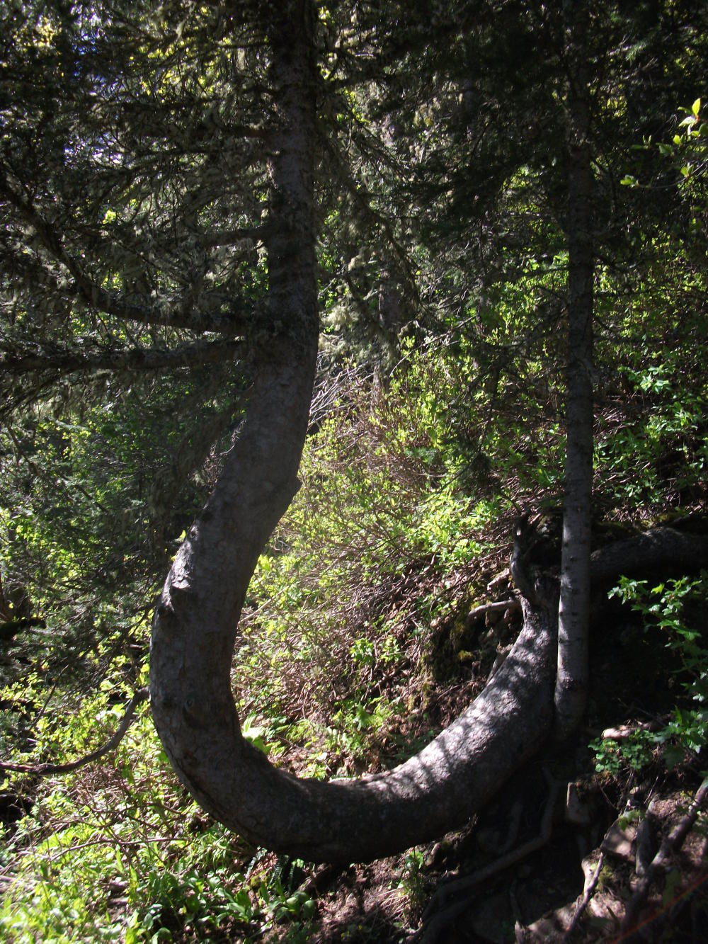 I locked up my bike near to the waterfall, at the trailhead for Bertha Lake, being very careful to close my food pannier very securely, and began on the hike. It was a beautiful sunny day and I was really looking forward to this chance to get off the bike and do some walking. The trail climbed slowly at first, through beautiful mountain scenery. Brightly coloured wild flowers brightened up the route further. There were a fair few other hikers on this first section, up until we reached a waterfall. Beyond that the path now climbed steeply up several switchbacks, and not very many people continued beyond the waterfall. Now I had the trail and the scenery very much to myself for about an hour until I reached my goal of Bertha Lake. It had been worth the effort – a beautiful lake surrounded by snow high in the mountains.