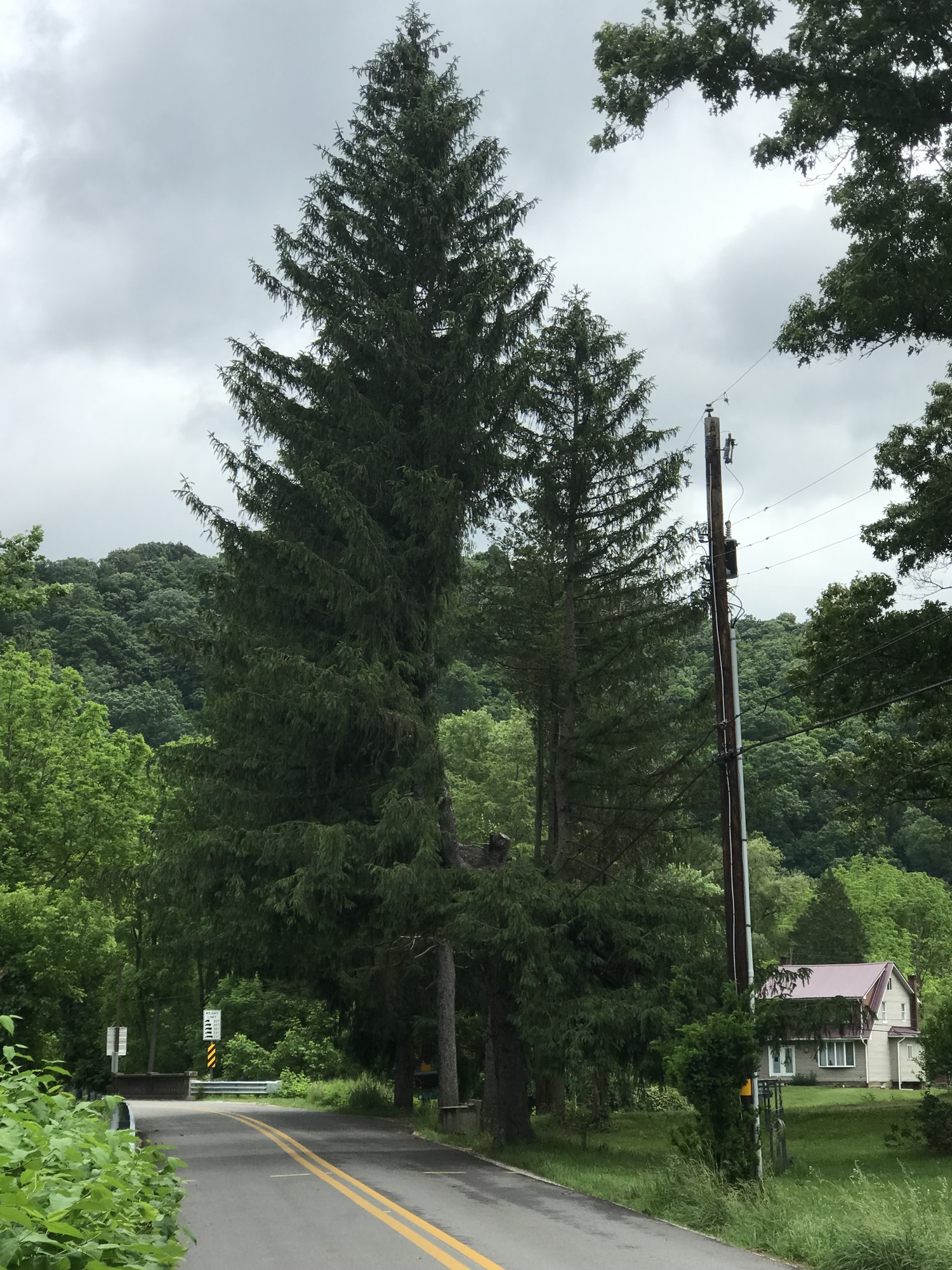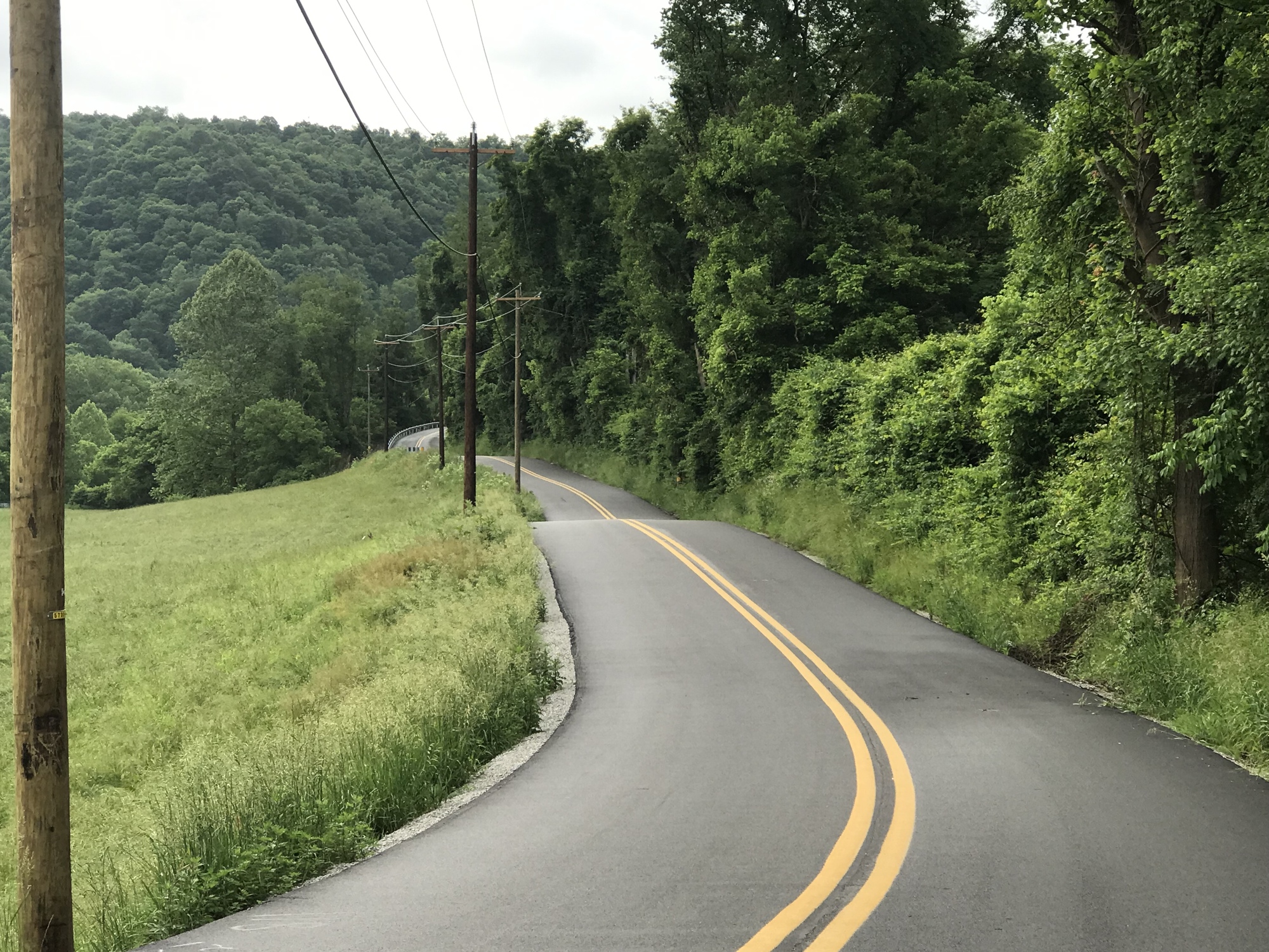 At Elm Grove, the main road (SR-88/US-250) is crossed and the name changed to Kruger. Shortly thereafter, the first of several Wheeling Creek crossings began the quieting down of traffic that is always appreciated during a ride. The road changed names a few times, each change continued the progression to a peaceful country road called Big Wheeling Creek Road. It happened to be running alongside a stream with the same name.