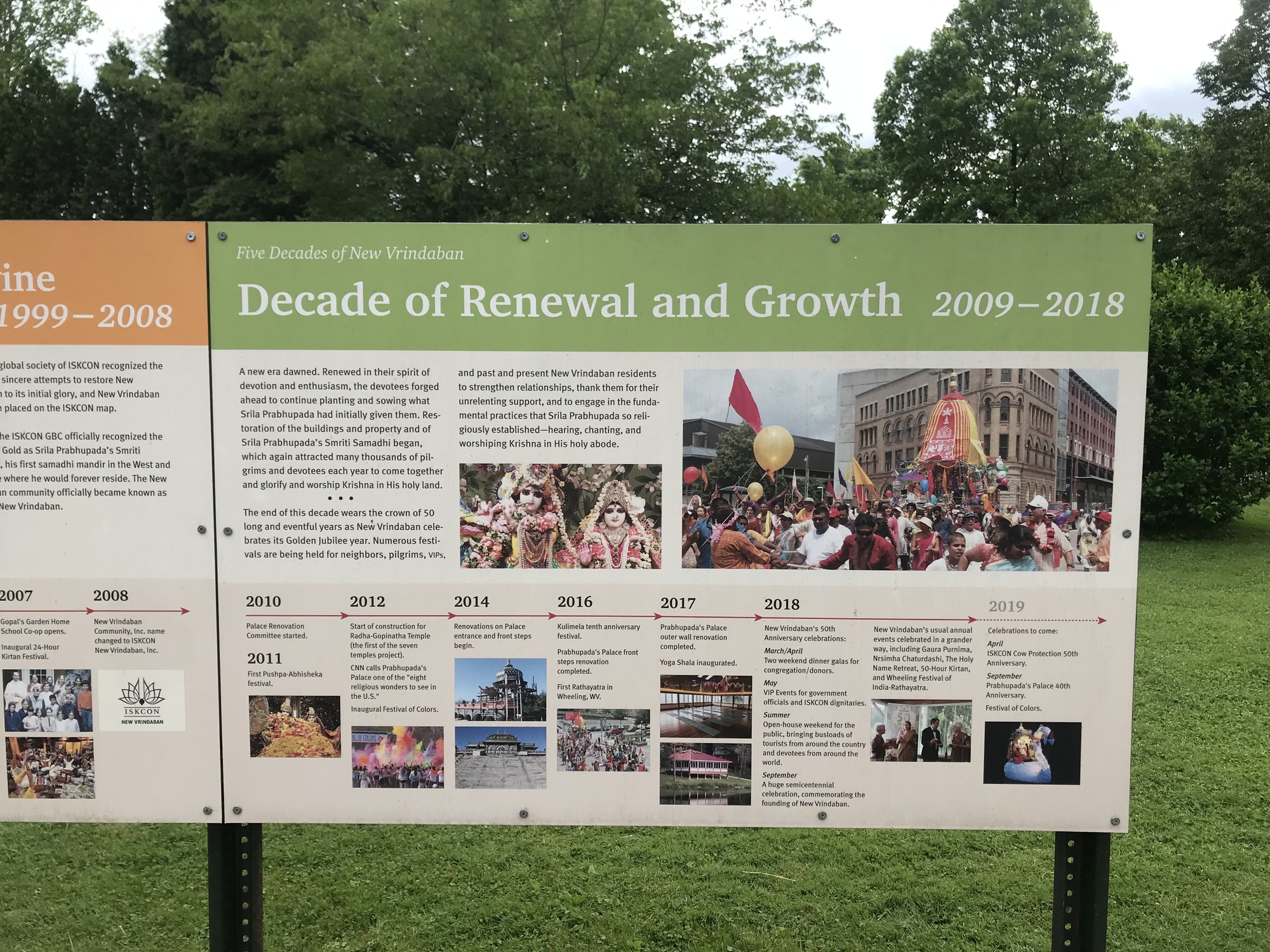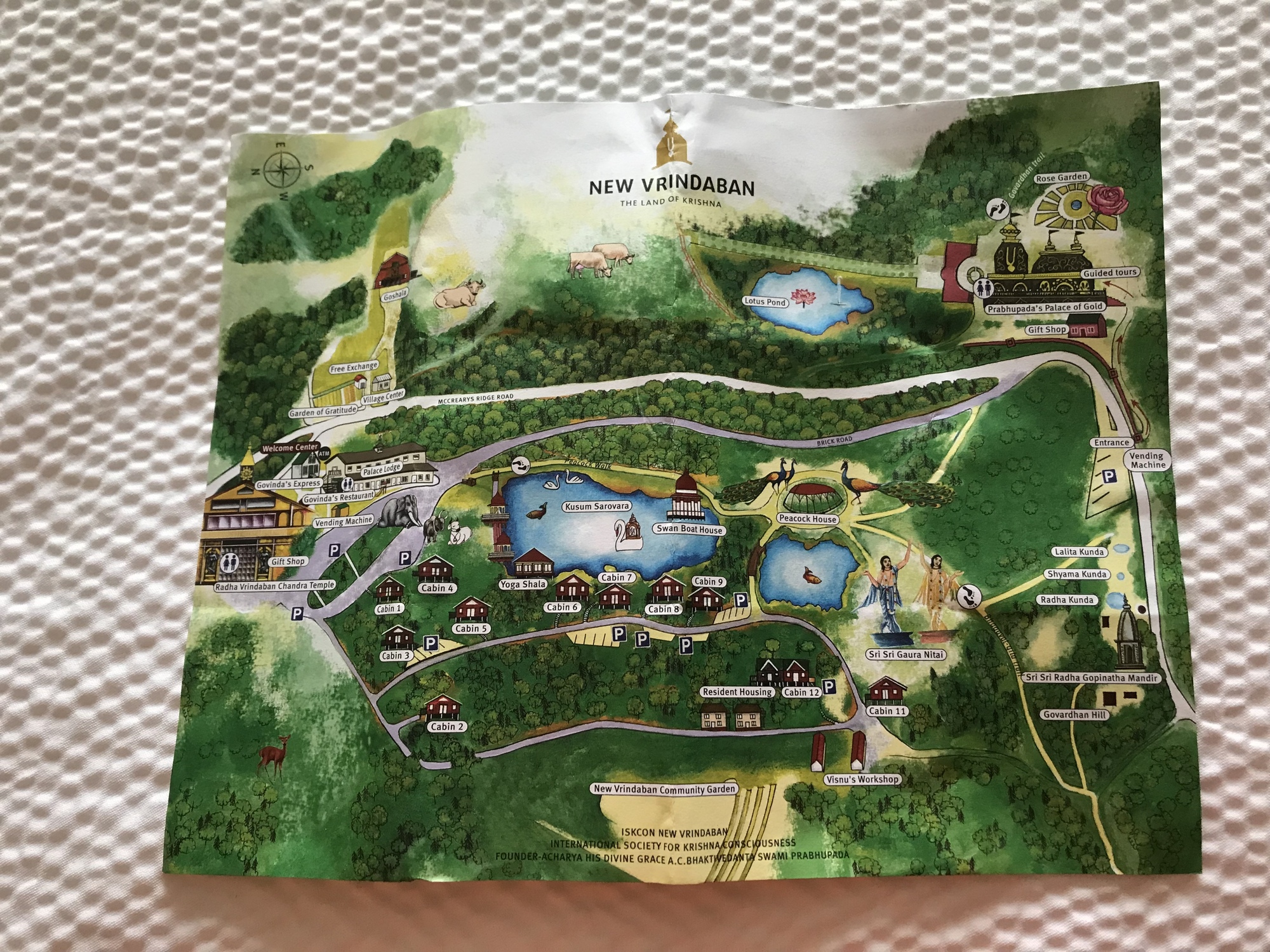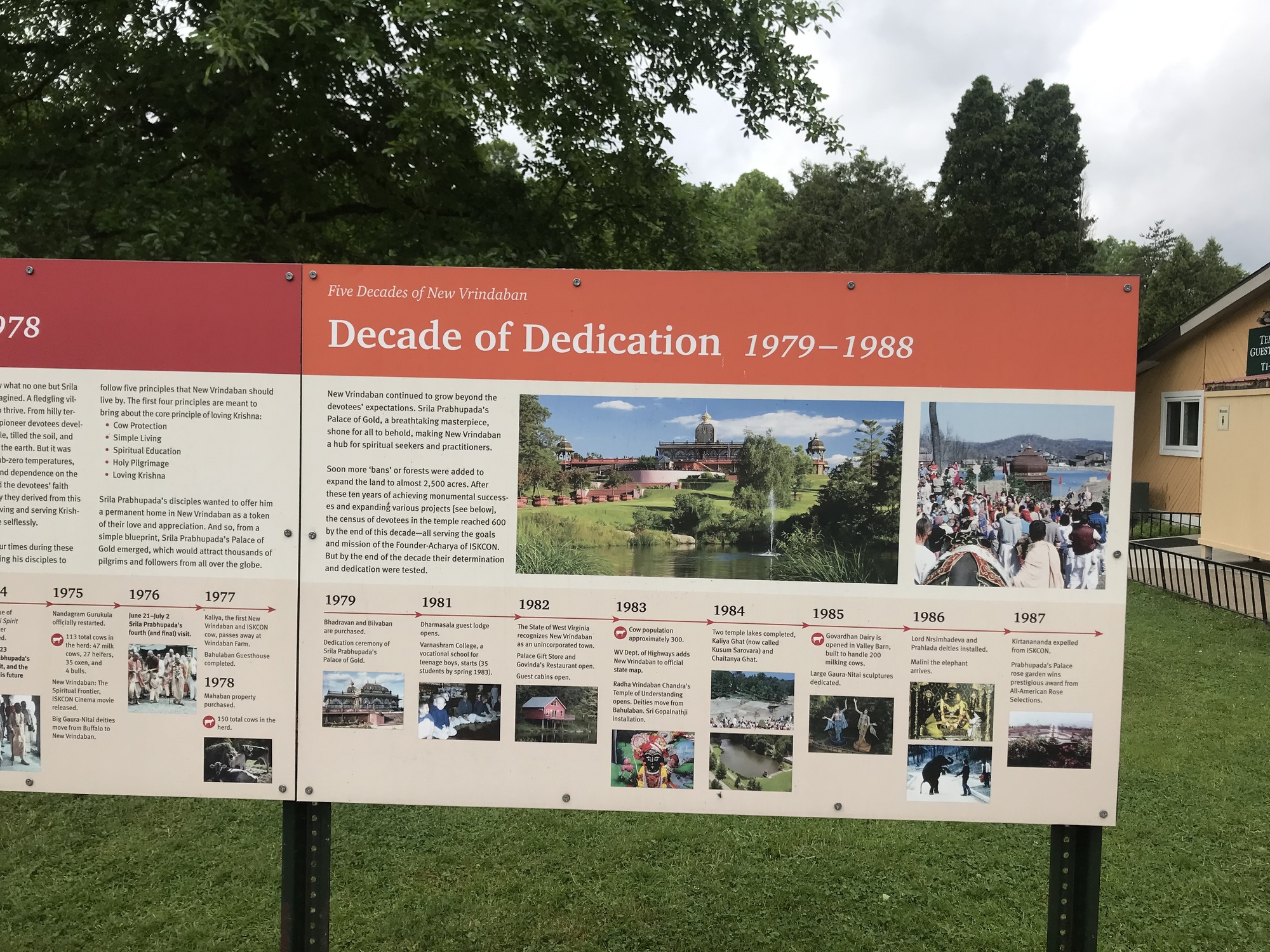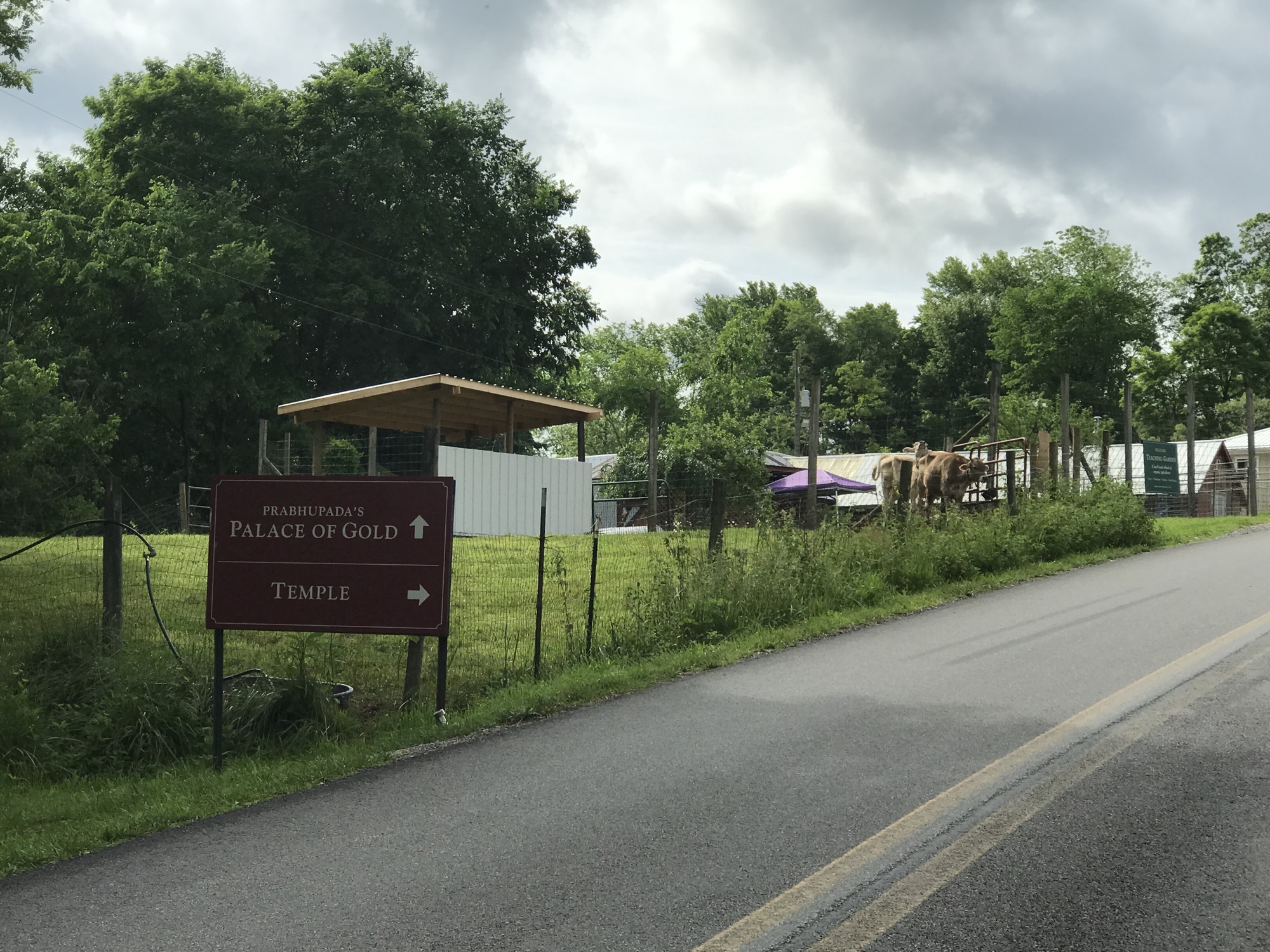 A few words about the palace compound. It was established by the Hari Krishnas around 1968. Since that time, impressive structures have been built, including a temple, the Palace of Gold, and housing by a community of worshippers who also practice gardening, and farming. The area is called New Vrindaban.