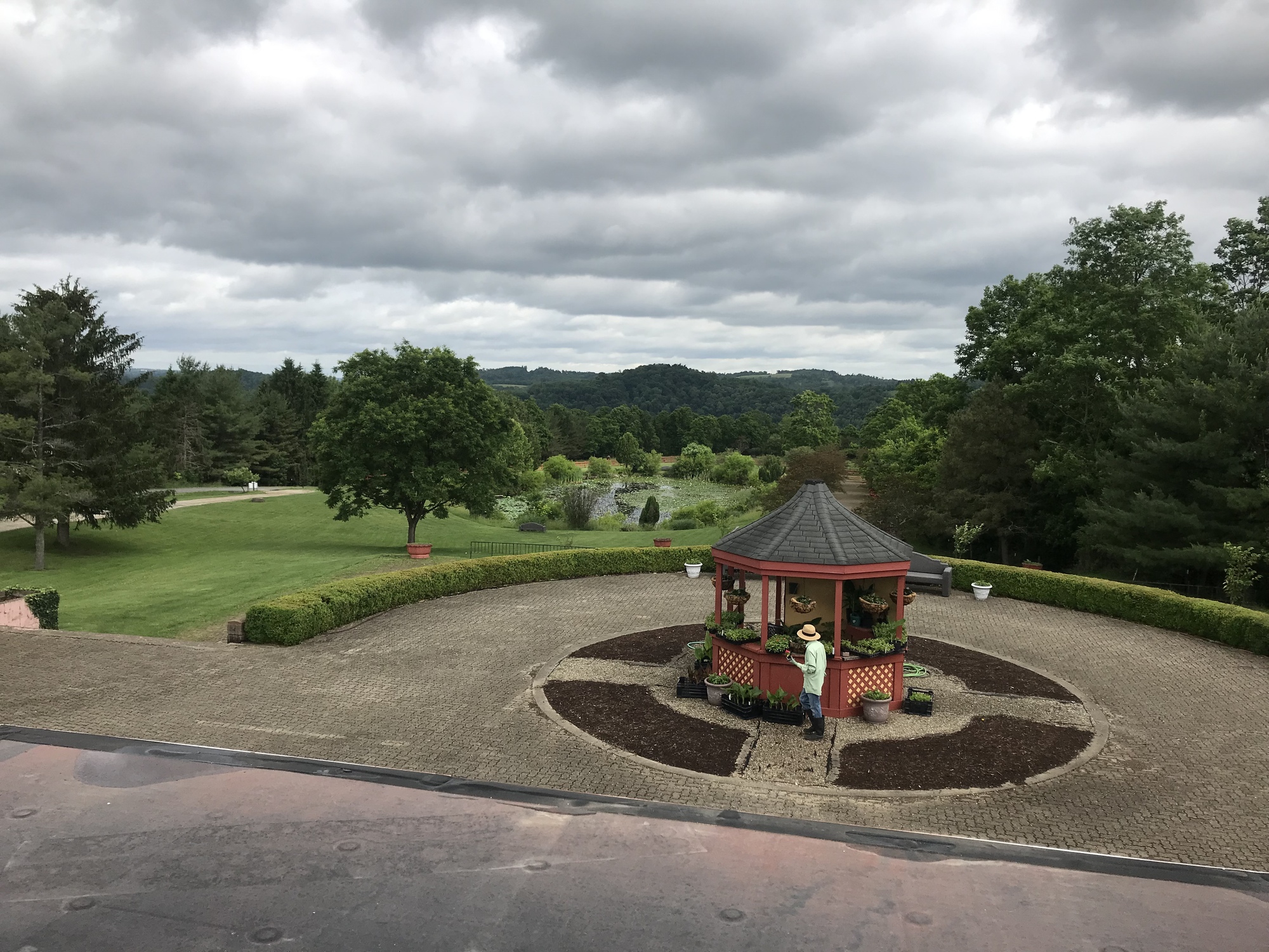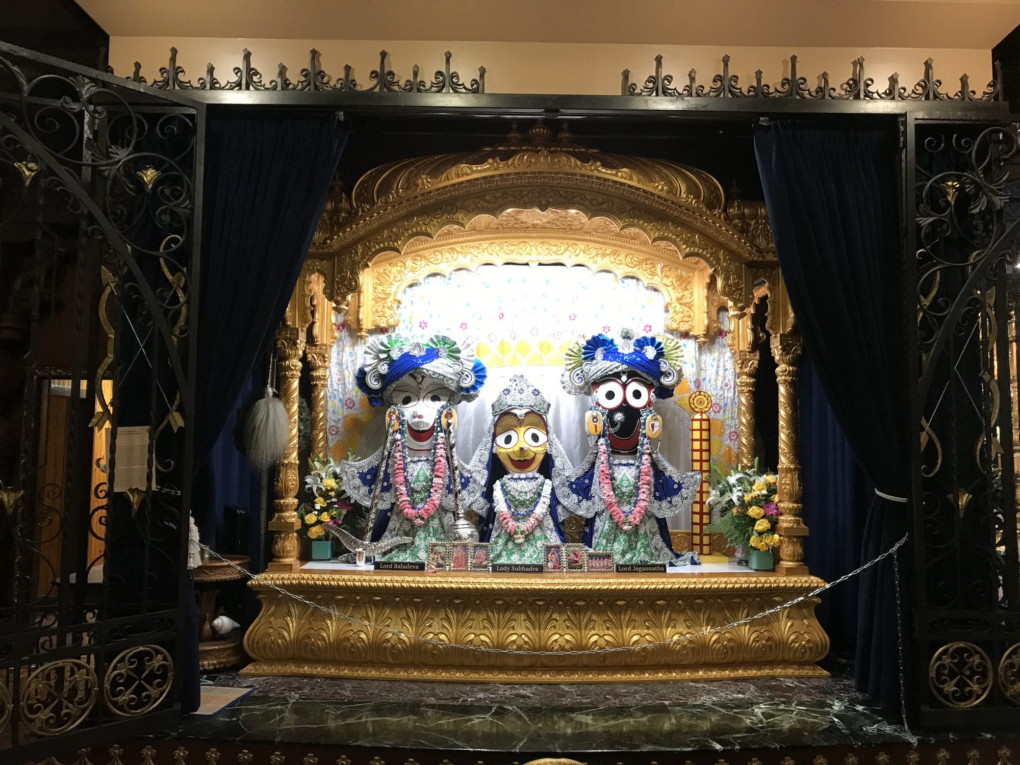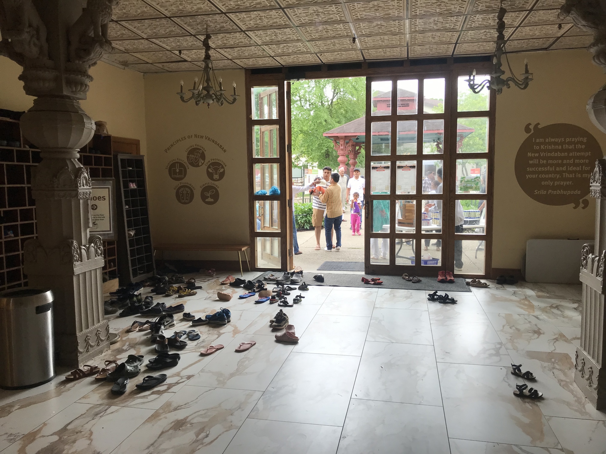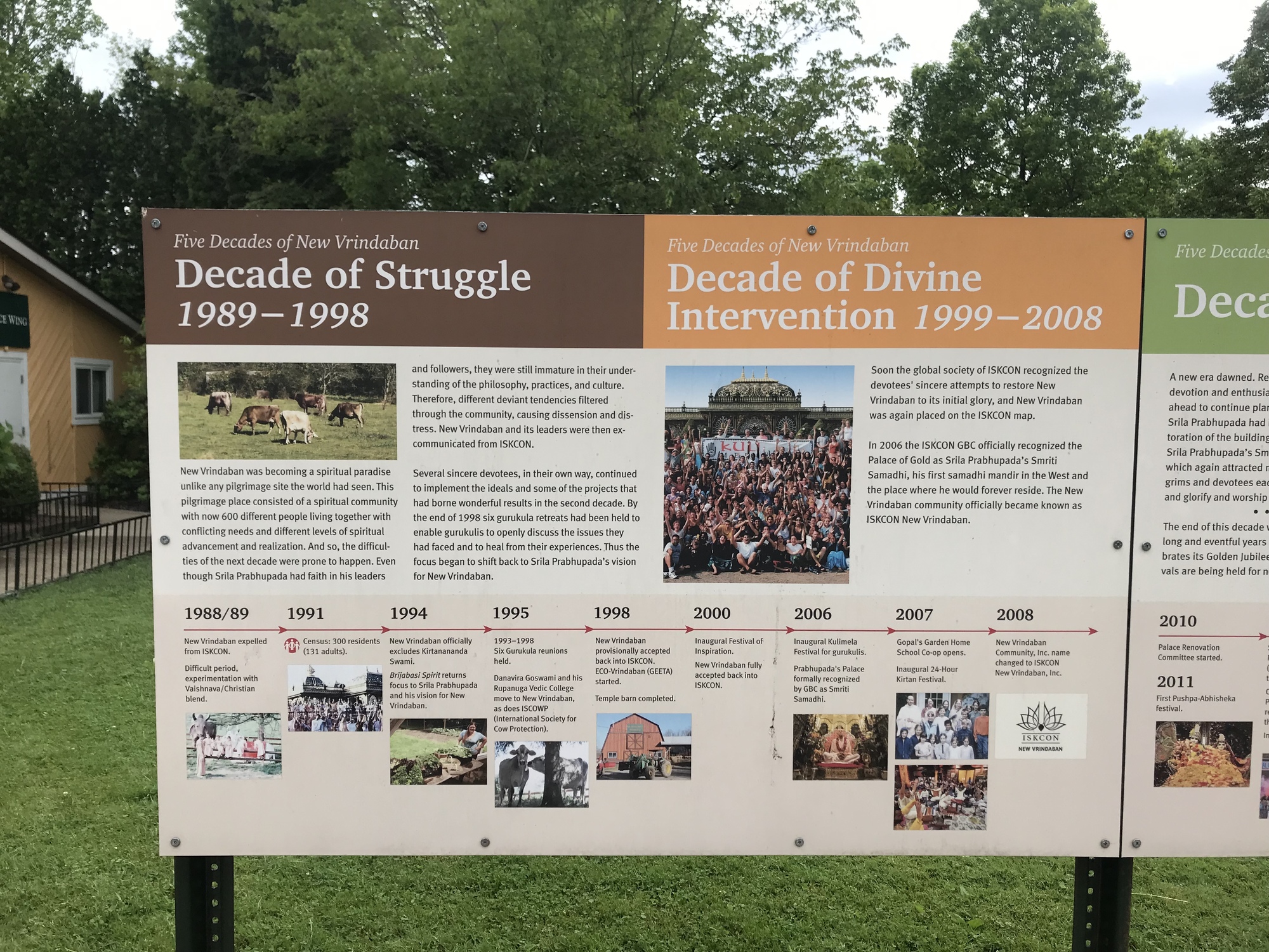 A few words about the palace compound. It was established by the Hari Krishnas around 1968. Since that time, impressive structures have been built, including a temple, the Palace of Gold, and housing by a community of worshippers who also practice gardening, and farming. The area is called New Vrindaban.