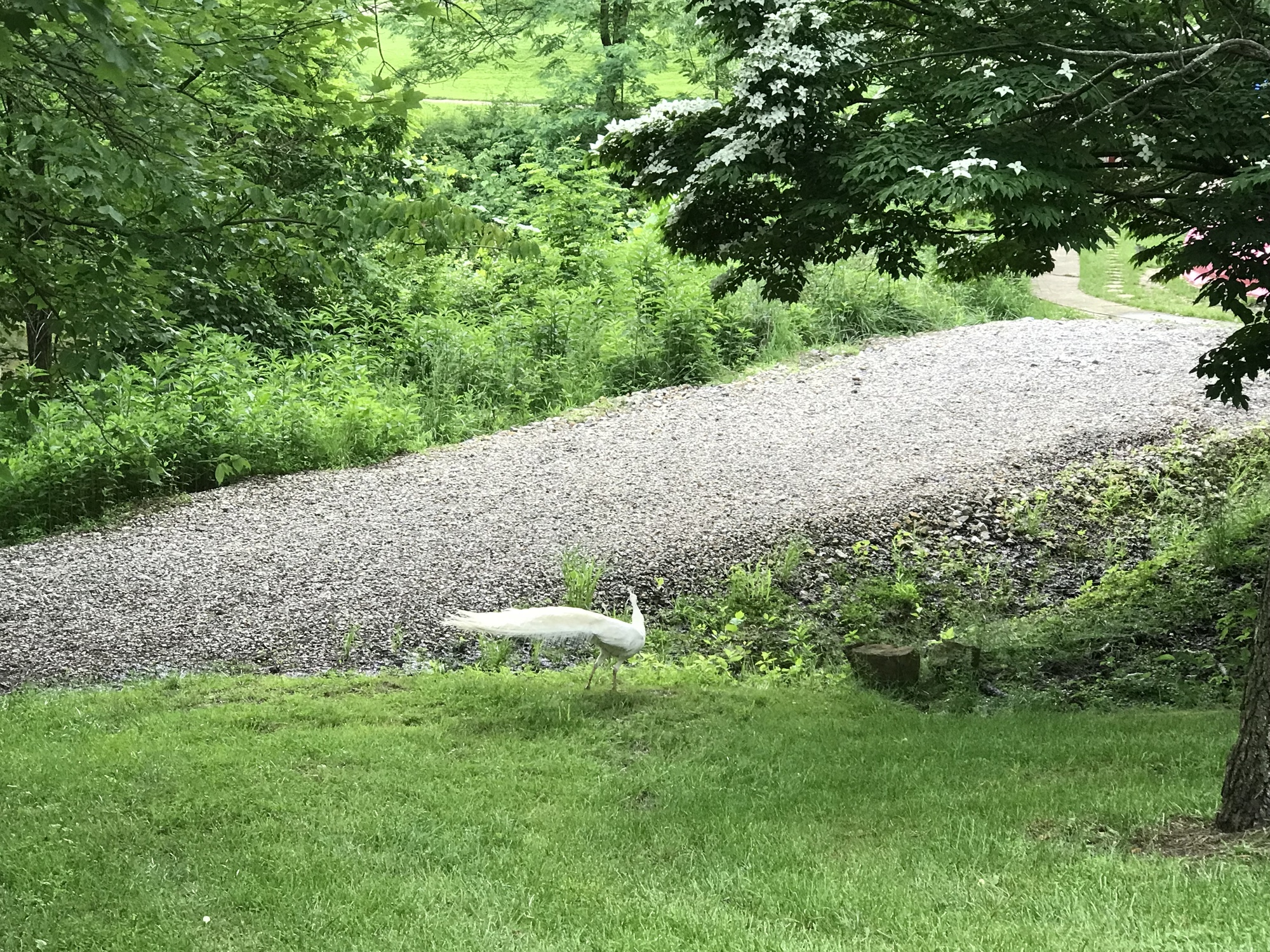 Albino Peacock. The sounds these birds make is quite distinctive. A fellow touring the place told me it reminds him of his home in India, where the birds and the sounds are commonplace .