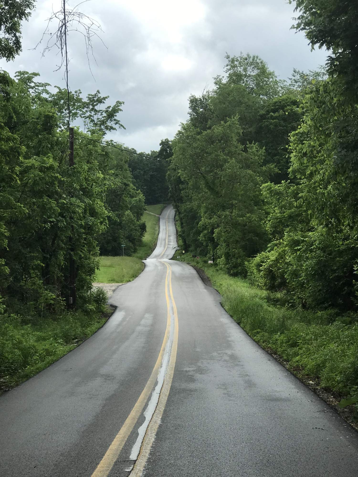 All day rain was the forecast, as late as yesterday afternoon. A strong thunderstorm, with tornado warnings, rolled through in the early evening. By morning, the rain subsided, the sun came out, and I decided to go for it. Turned out to be a dry ride and a good decision. From Wheeling, I headed South on the National Road.