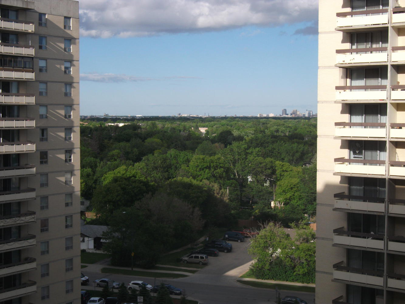 Unfortunately my bliss was interrupted after eight kilometers by a major highway on the outskirts of Winnipeg. I could see the trail continuing on the other side, but there was no way to cross the road. I waited a while, hoping for a break in traffic that never arrived. Eventually I had to concede defeat, and made a huge diversion north. But it was alright, more cycle paths led me to my destination, that of my old tree-planting buddy Jason’s apartment, where I was to spend the night.
