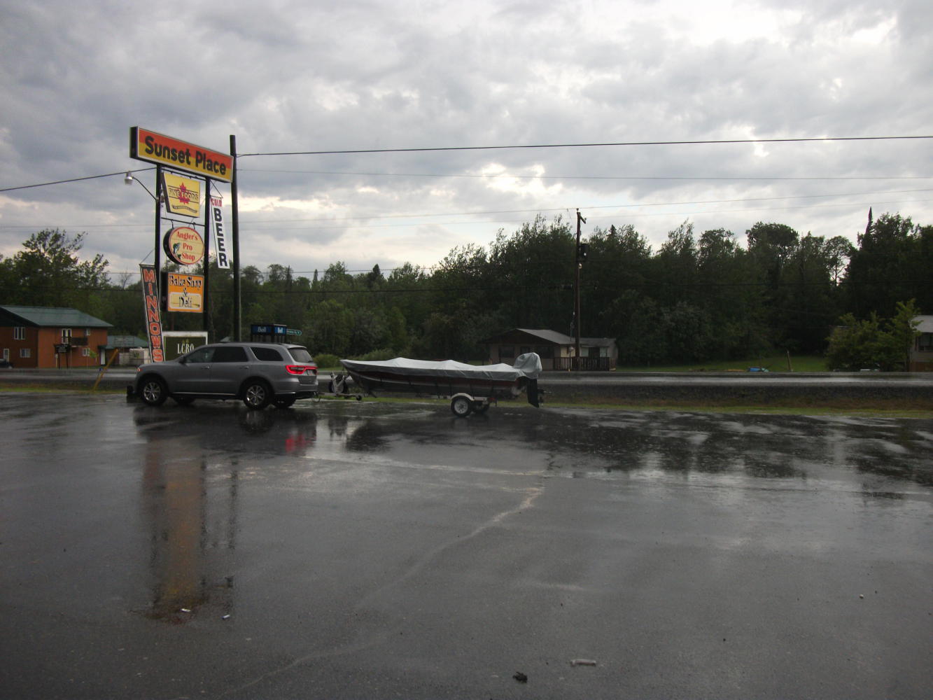 The next day it rained. Lightly for most of the day, at least, although we had a headwind and the road was busier somehow, so it was not a great day. There were lots of lakes, lakes everywhere, and most of the traffic seemed to be fishermen. Almost every other vehicle was towing a boat behind it.